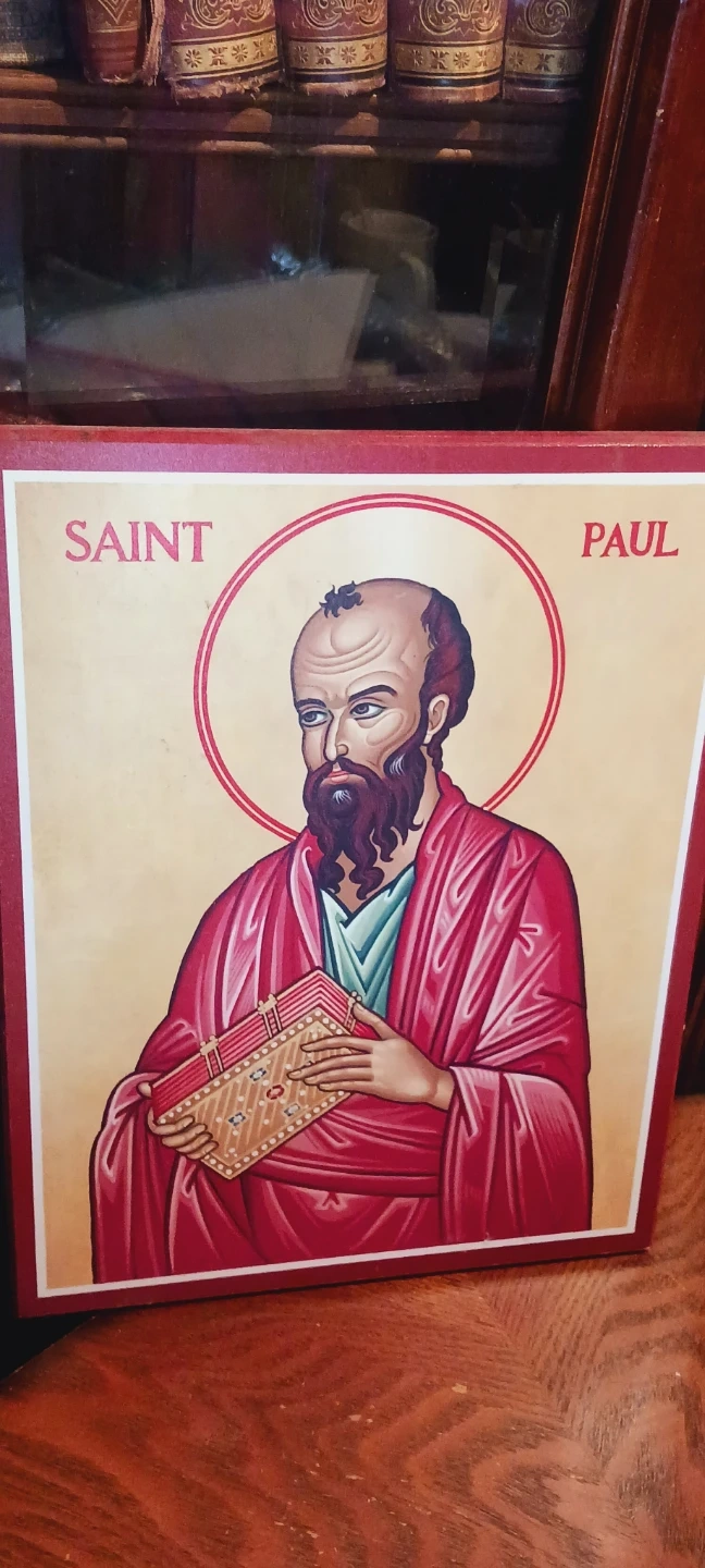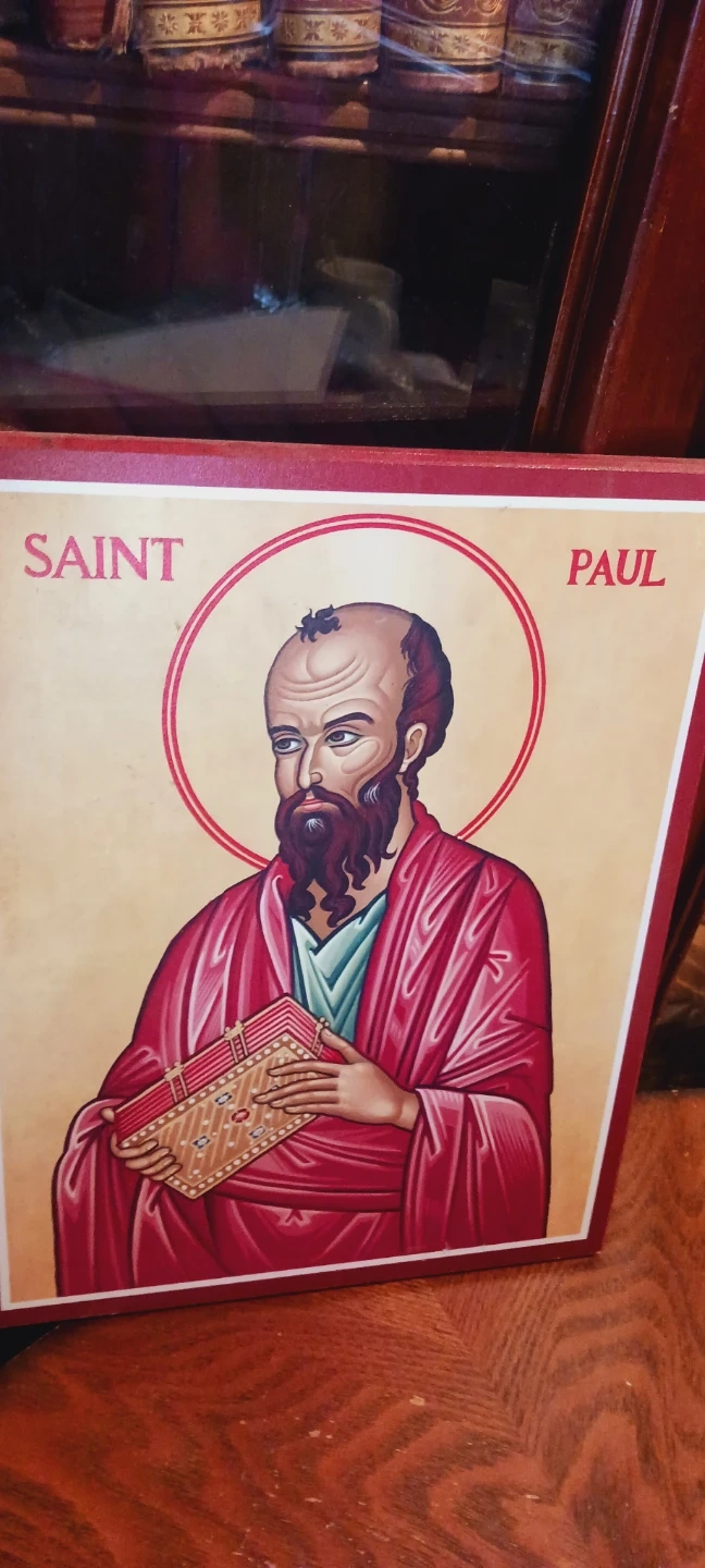 Religious icon featuring Saint Paul. The artwork depicts him in traditional attire holding a Bible. Adds a spiritual element to home decor. 14"×11". Excellent condition, like new. ALL MY PRICES ARE NEGOTIABLE !!