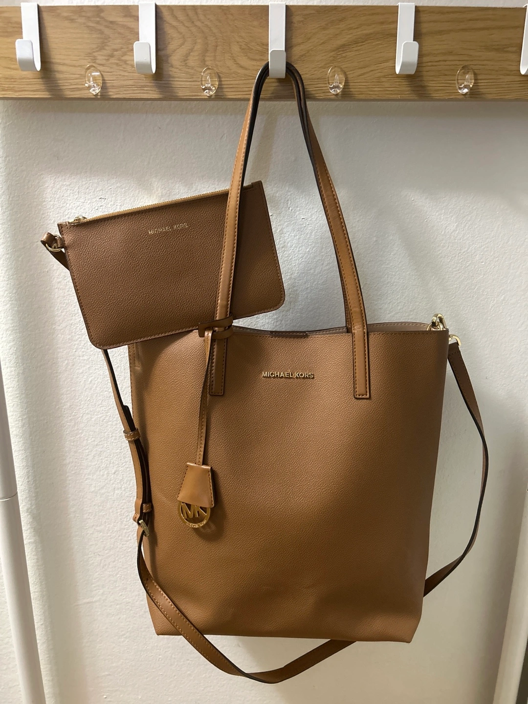 Michael Kors Brown Leather Tote Bag with Wristlet. Authentic