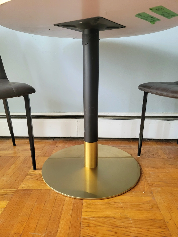 Tags: modern Contemporary tulip gold guild brass copper round oval dinette bistro dining set cocktails table film tv set dec breakfast nook