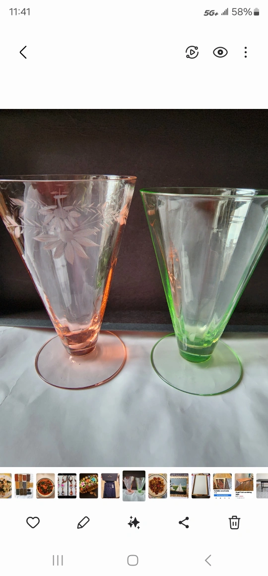 97Pretty etched glass goblets. One pink, one green. Unique vintage pieces. Great for entertaining or collecting. $5 each BUYER HAS TO PICK UP CASH ONLY
