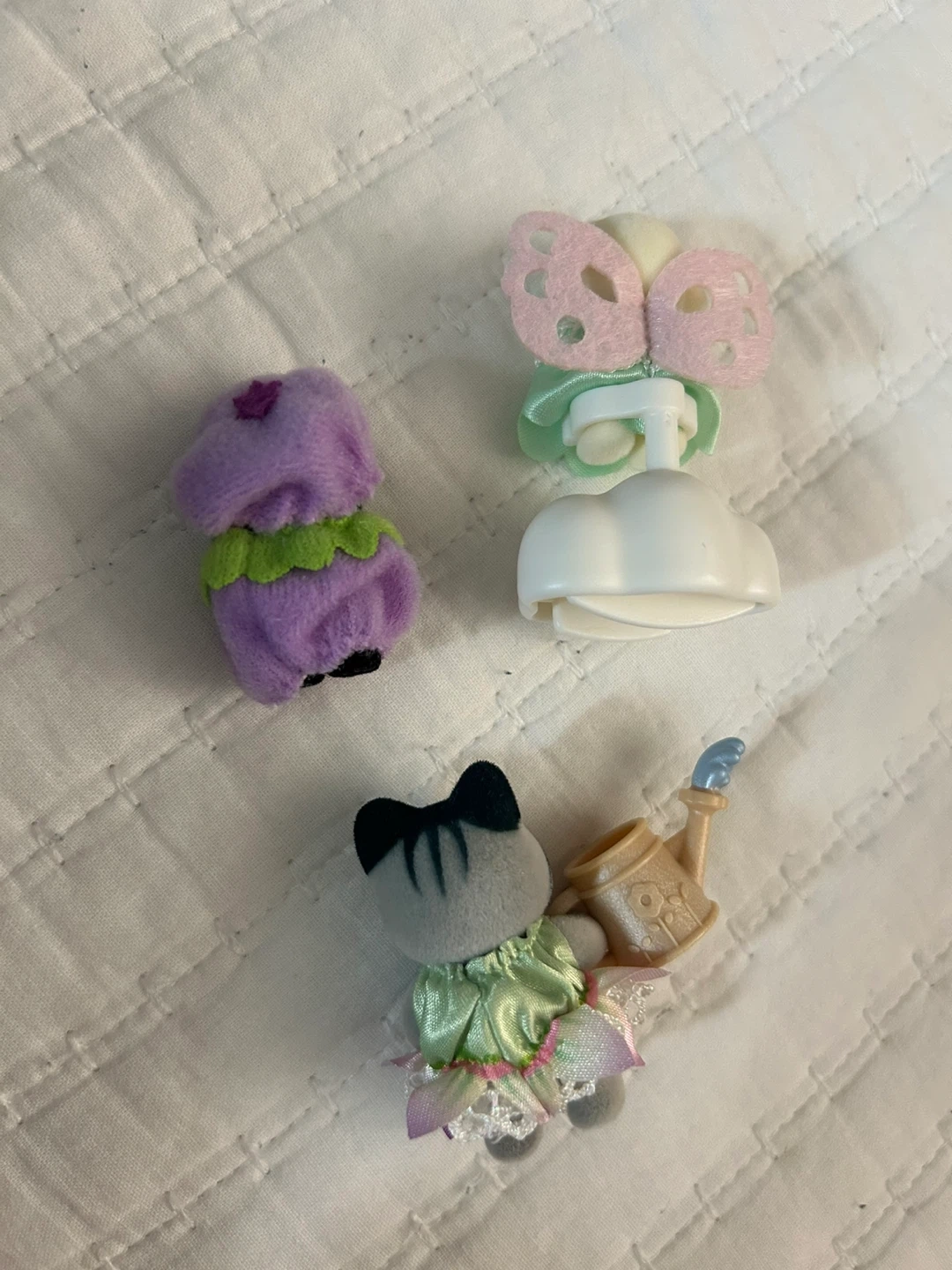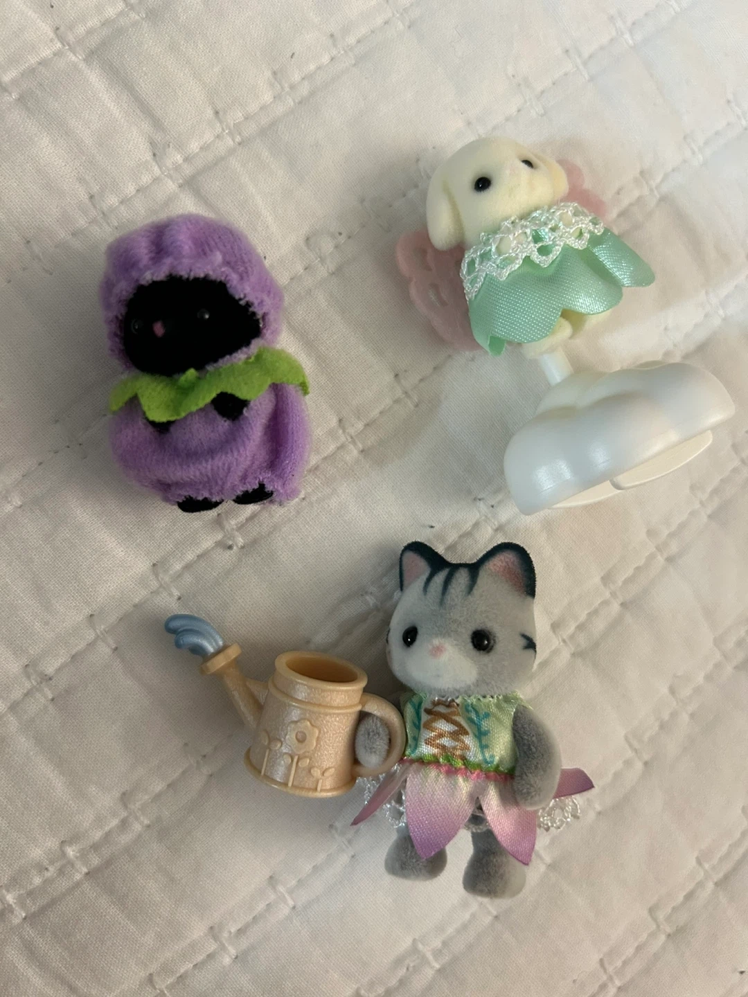 This set includes 3 Calico Critters. They're flocked animal toys perfect for collectors or imaginative play! I am selling, because they are duplicates from the blind bags.
