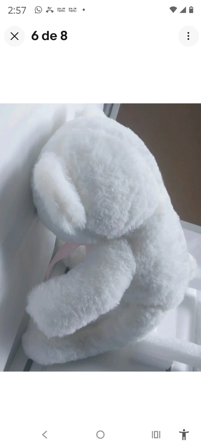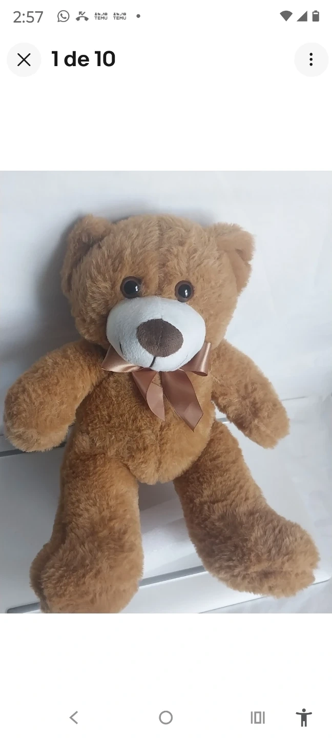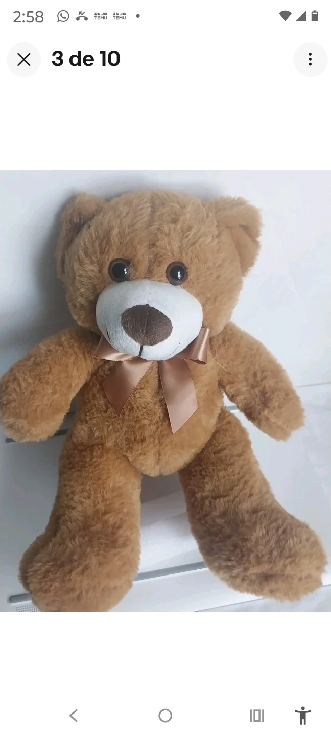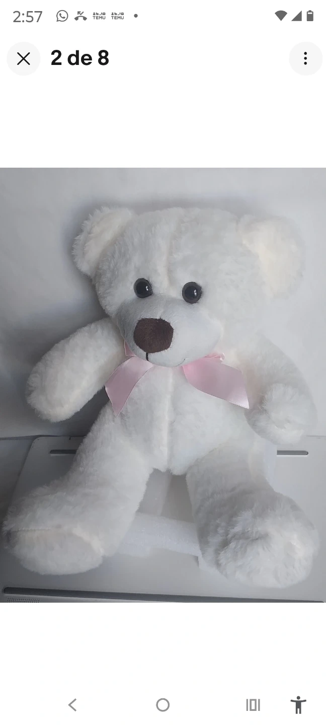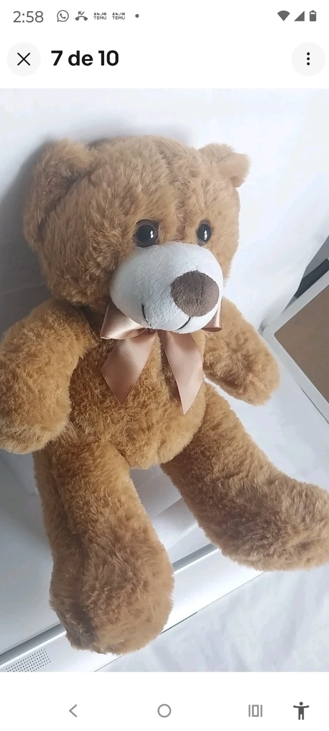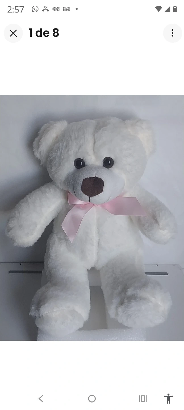 This is a plush teddy bear stuffed animal. It's soft and cuddly. Available in brown and white options. It has a satin ribbon bow.