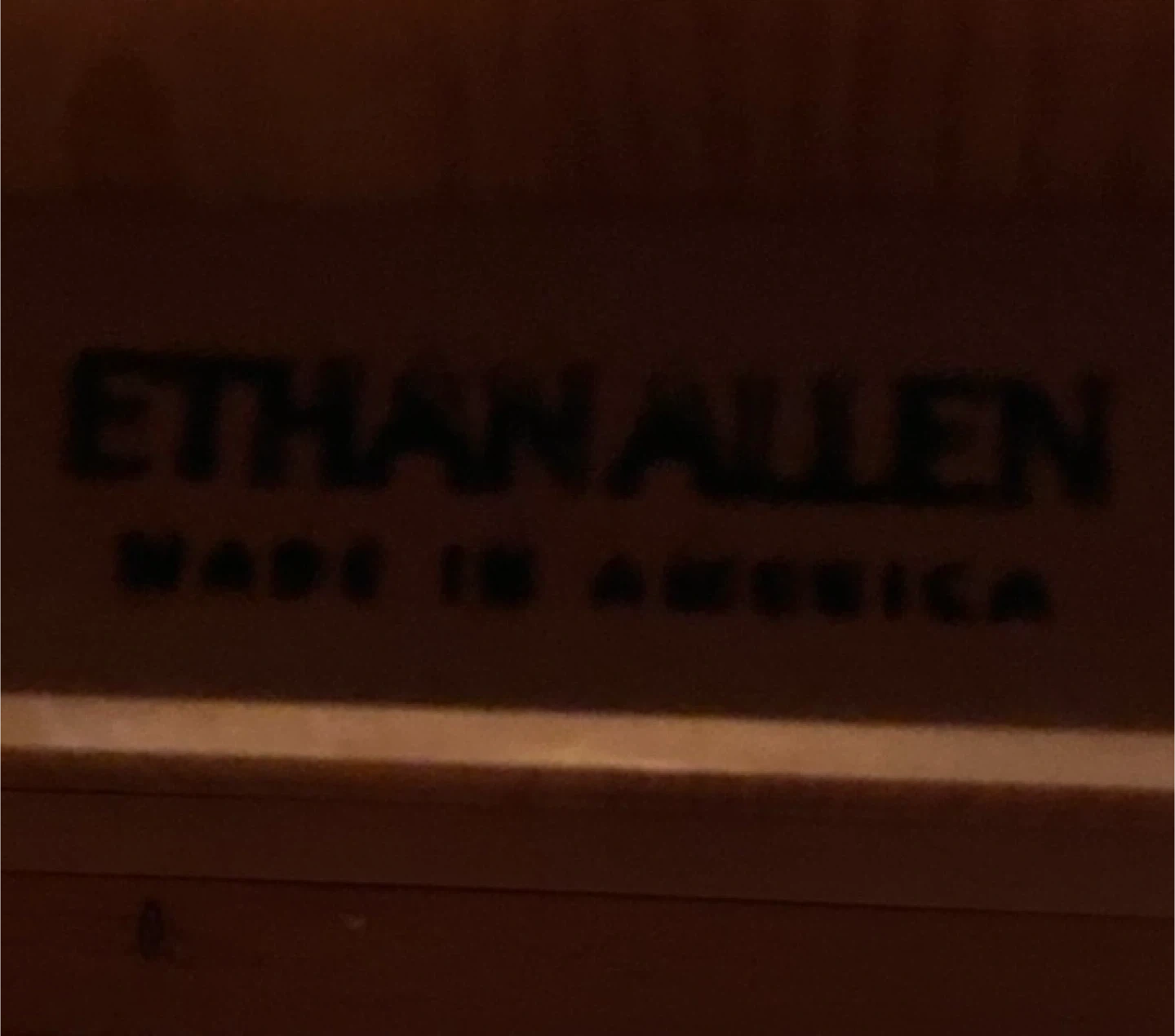 This is a sturdy wooden dining table from Ethan Allen. It features a warm wood tone and a unique X-leg design. Made in America. Perfect for your dining room! Originally purchased for $3500. Also includes a padded table cover in a carrying case.