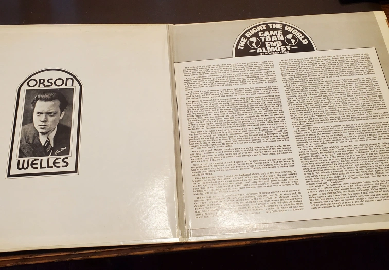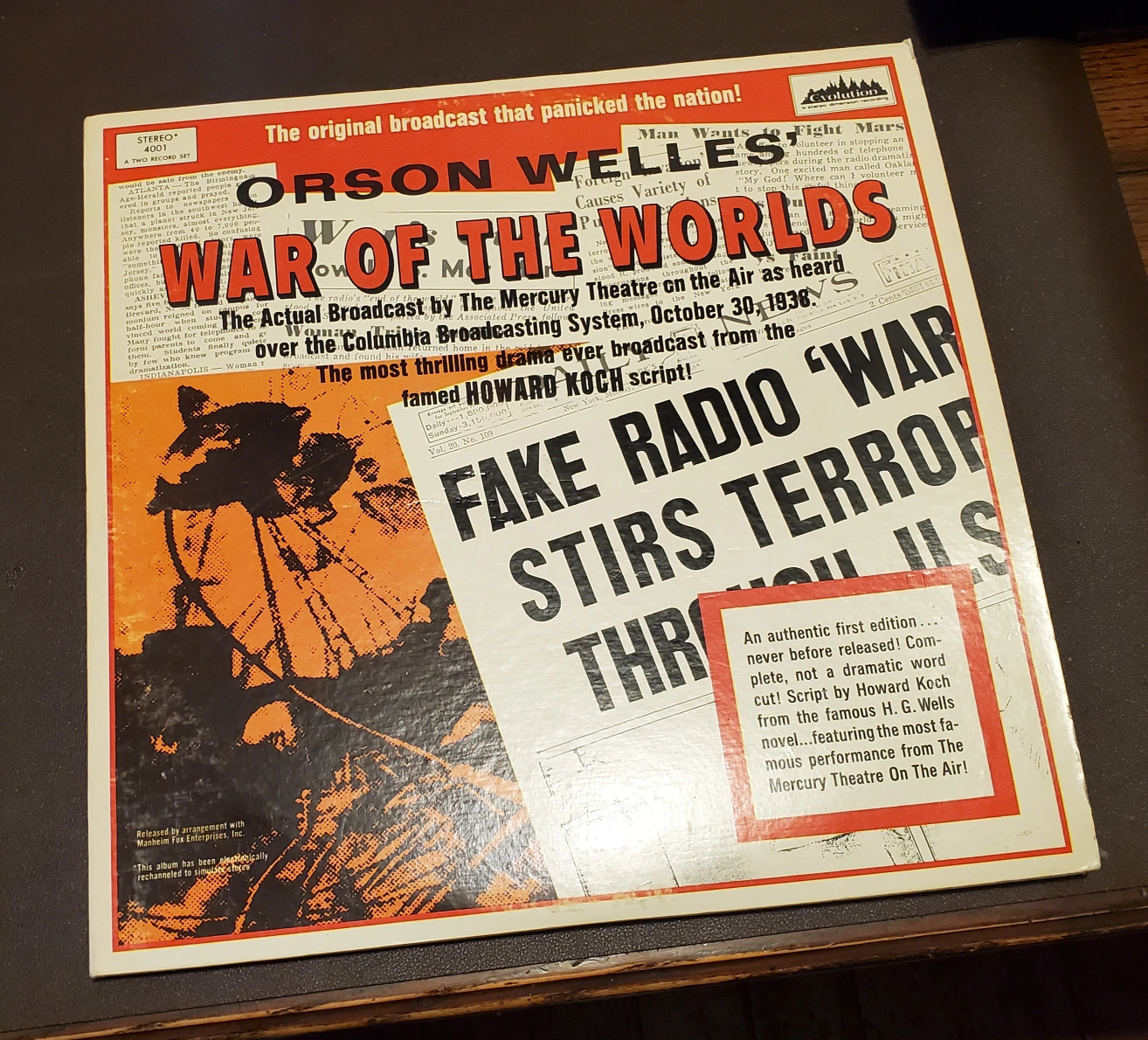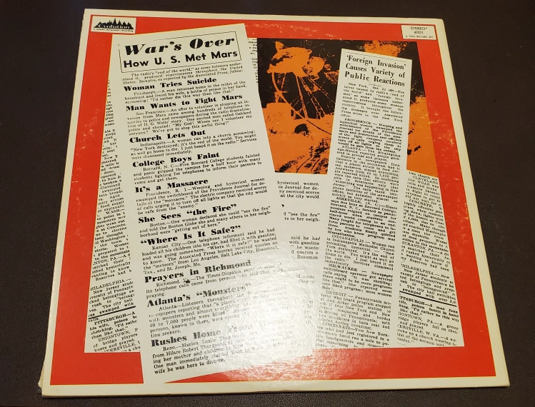 256Vintage double record album of Orson Welles' infamous War of the Worlds broadcast. Includes liner notes and additional information. First edition original broadcast from 1938.