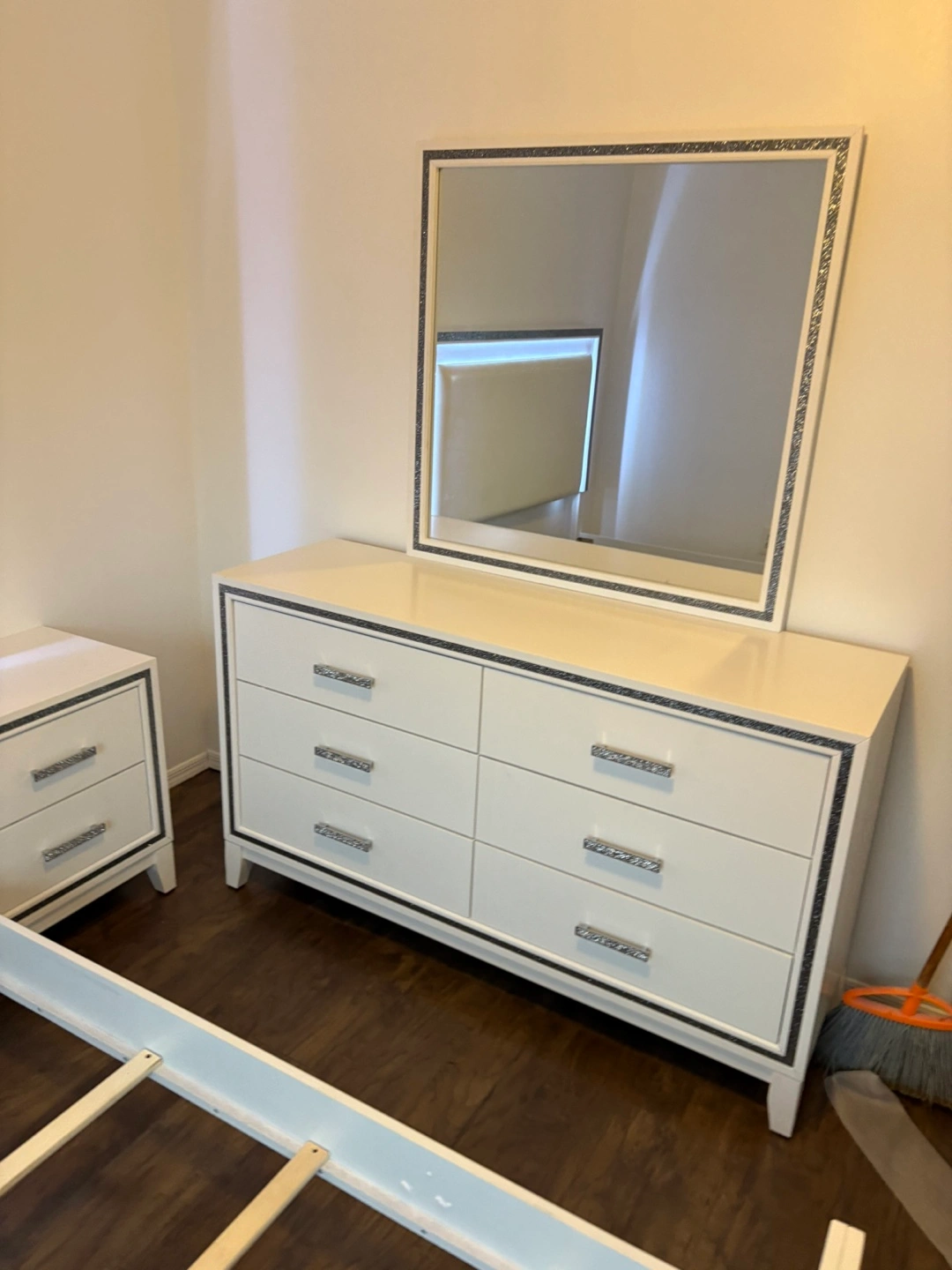 60Brand new bedroom set in stock with a led lighting in stock including the queen bed dresser mirror chest one night stand we do deliver direct from the importer no middle man in stock ready to be delivered