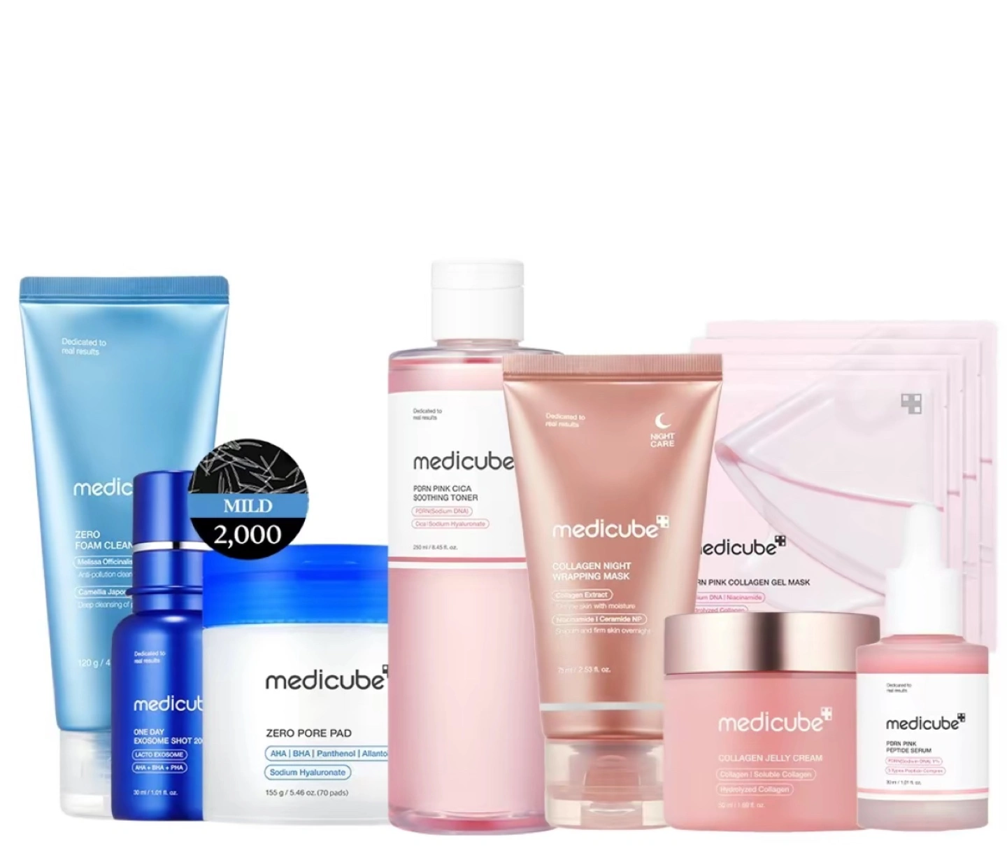 Complete skincare set. Includes cleanser, toner, serum, masks, and cream. Perfect for a complete skincare routine.