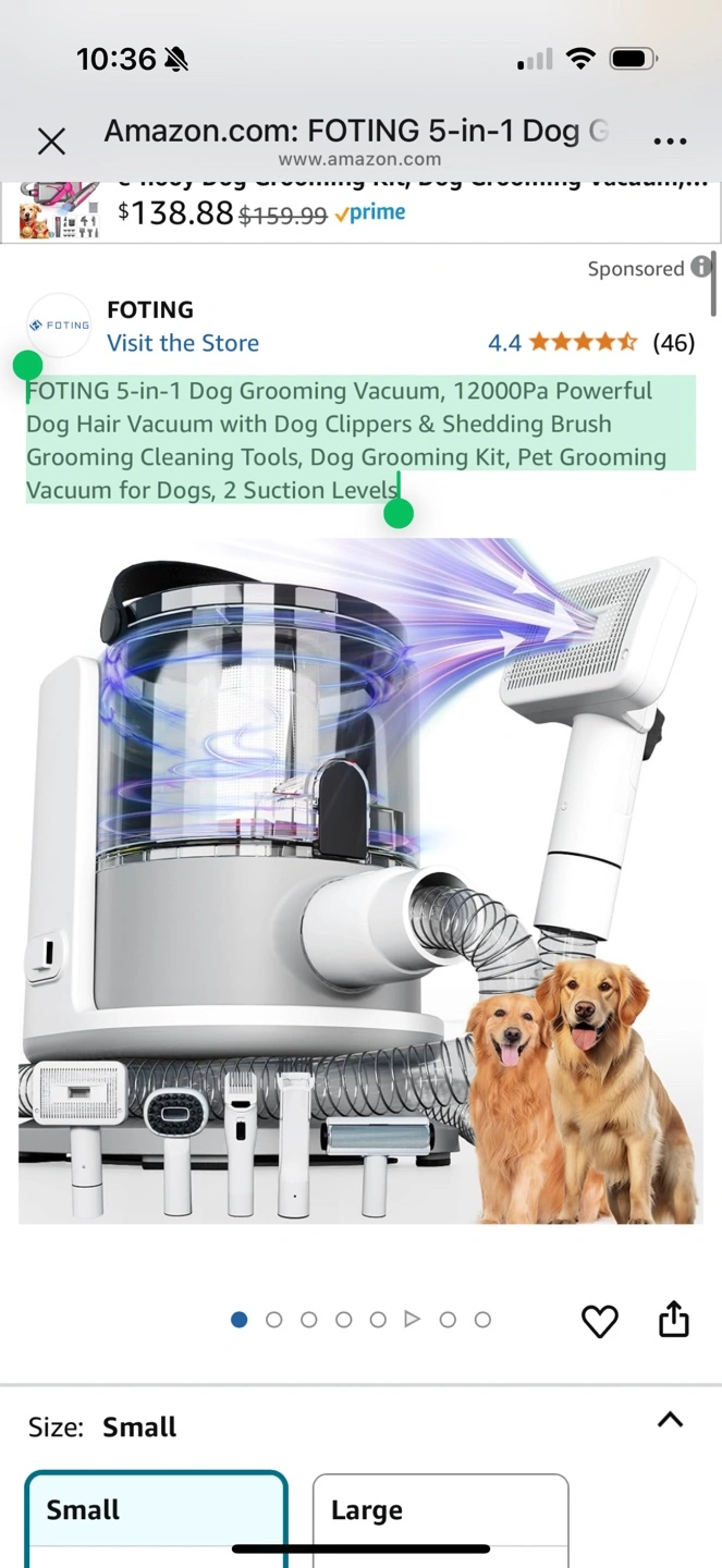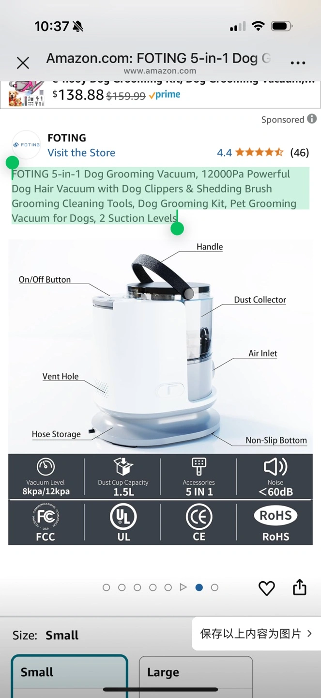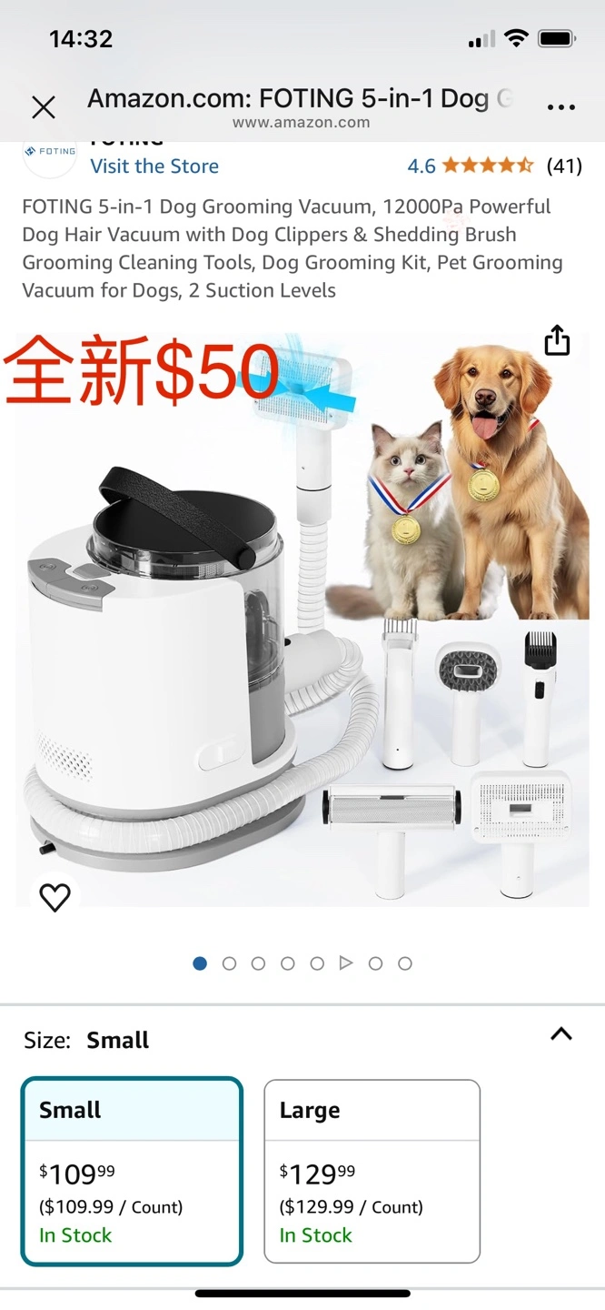 FOTING 5-in-1 Dog Grooming Vacuum, 12000Pa Powerful Dog Hair Vacuum with Dog Clippers & Shedding Brush Grooming Cleaning Tools, Dog Grooming Kit, Pet Grooming Vacuum for Dogs, 2 Suction Levels(brand new)