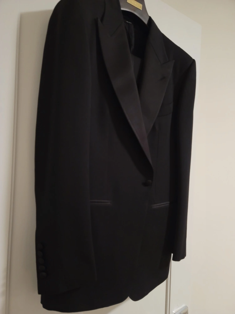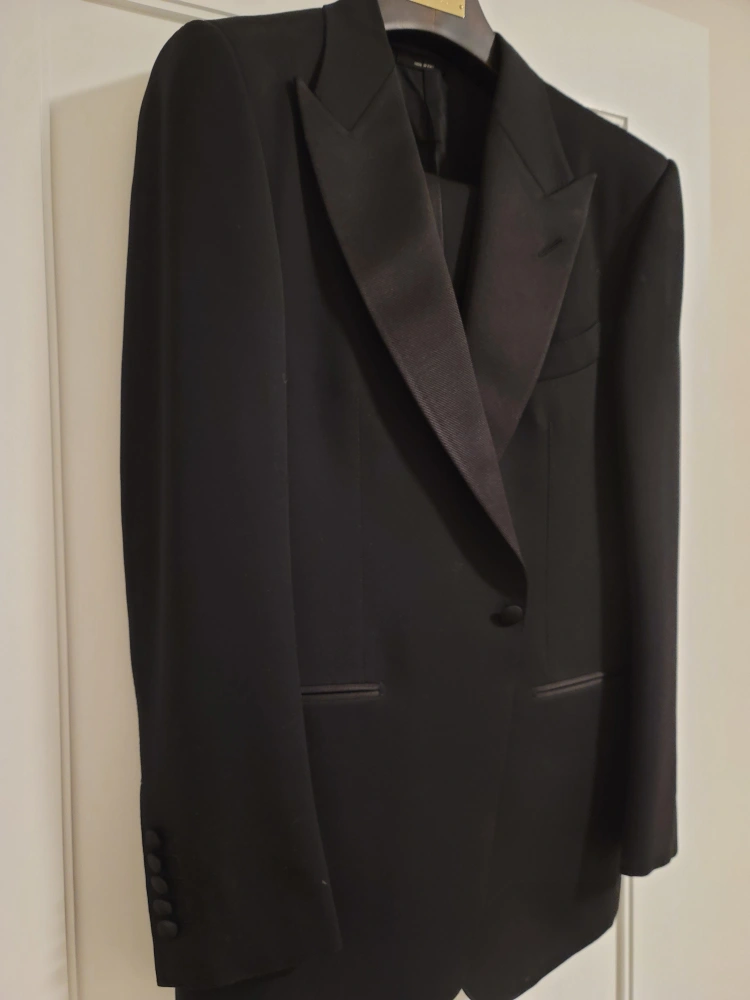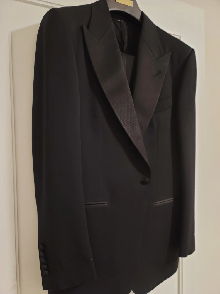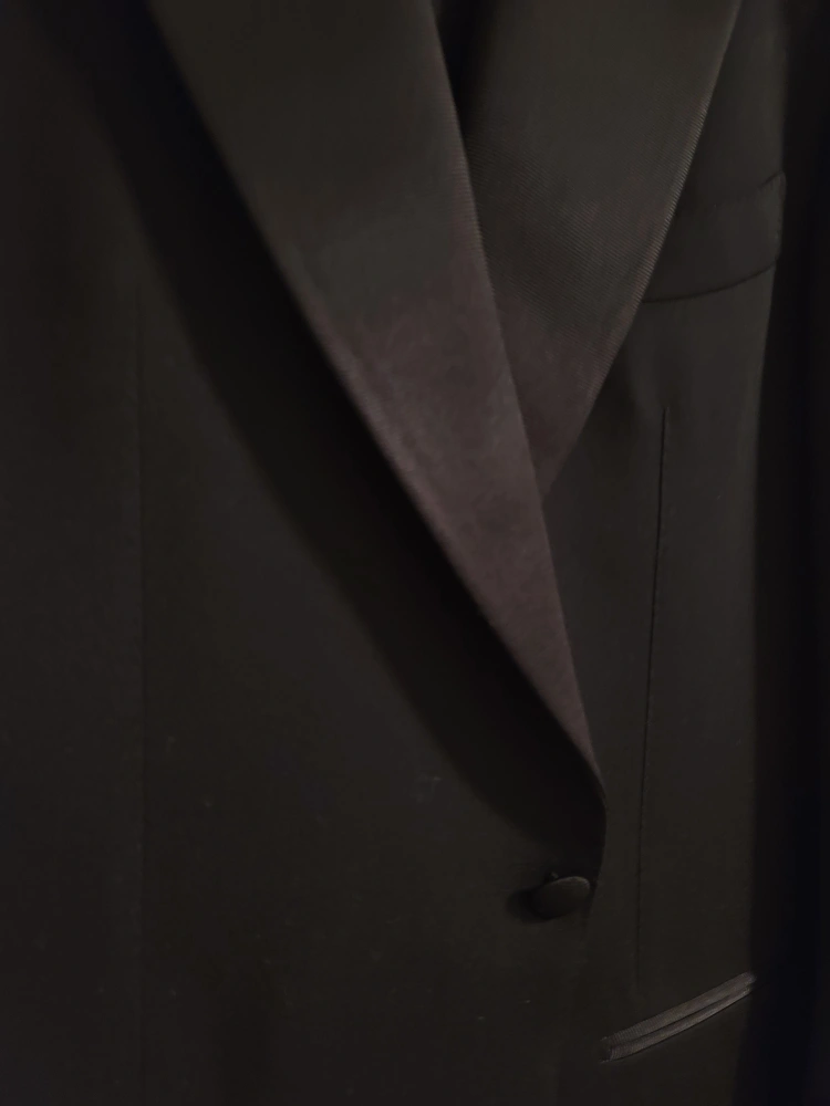 Black tuxedo, size 50R. Jacket and pants. Classic style. Excellent for formal events.
