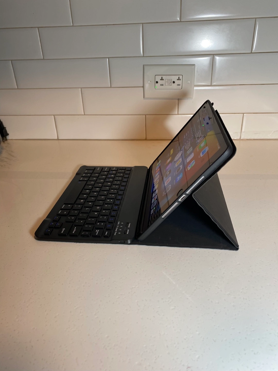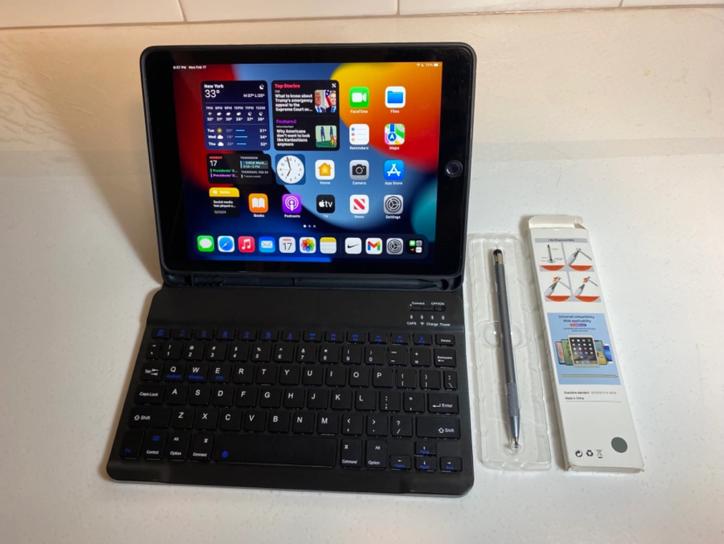 Apple iPad Air 2 with Mini keyboard case. Includes a stylus. Great for productivity and portability. Bluetooth keyboard.