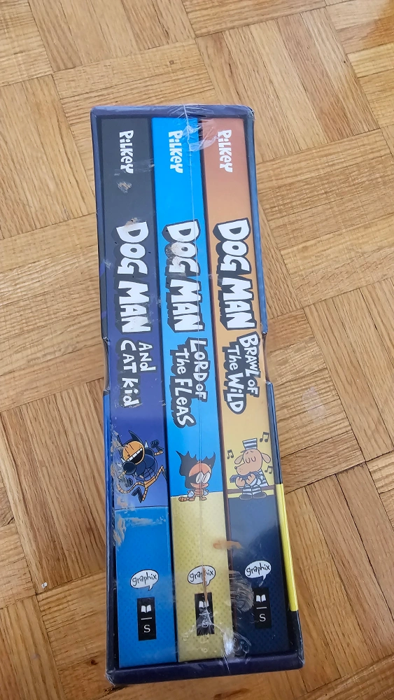 Three graphic novels by Dav Pilkey. Includes *Dog Man and Cat Kid*, *Lord of the Fleas*, and * Brawl of the Wild*. New and sealed.