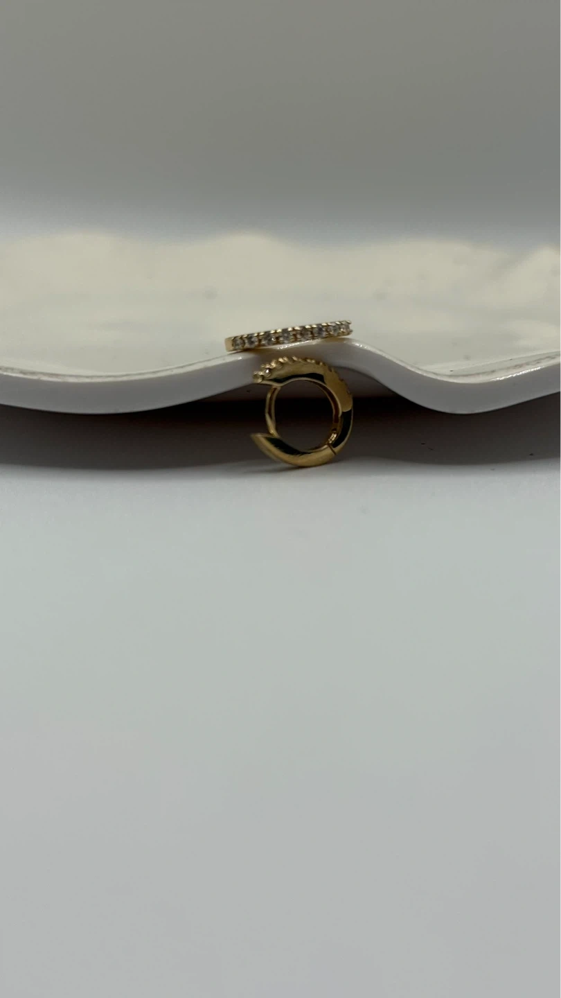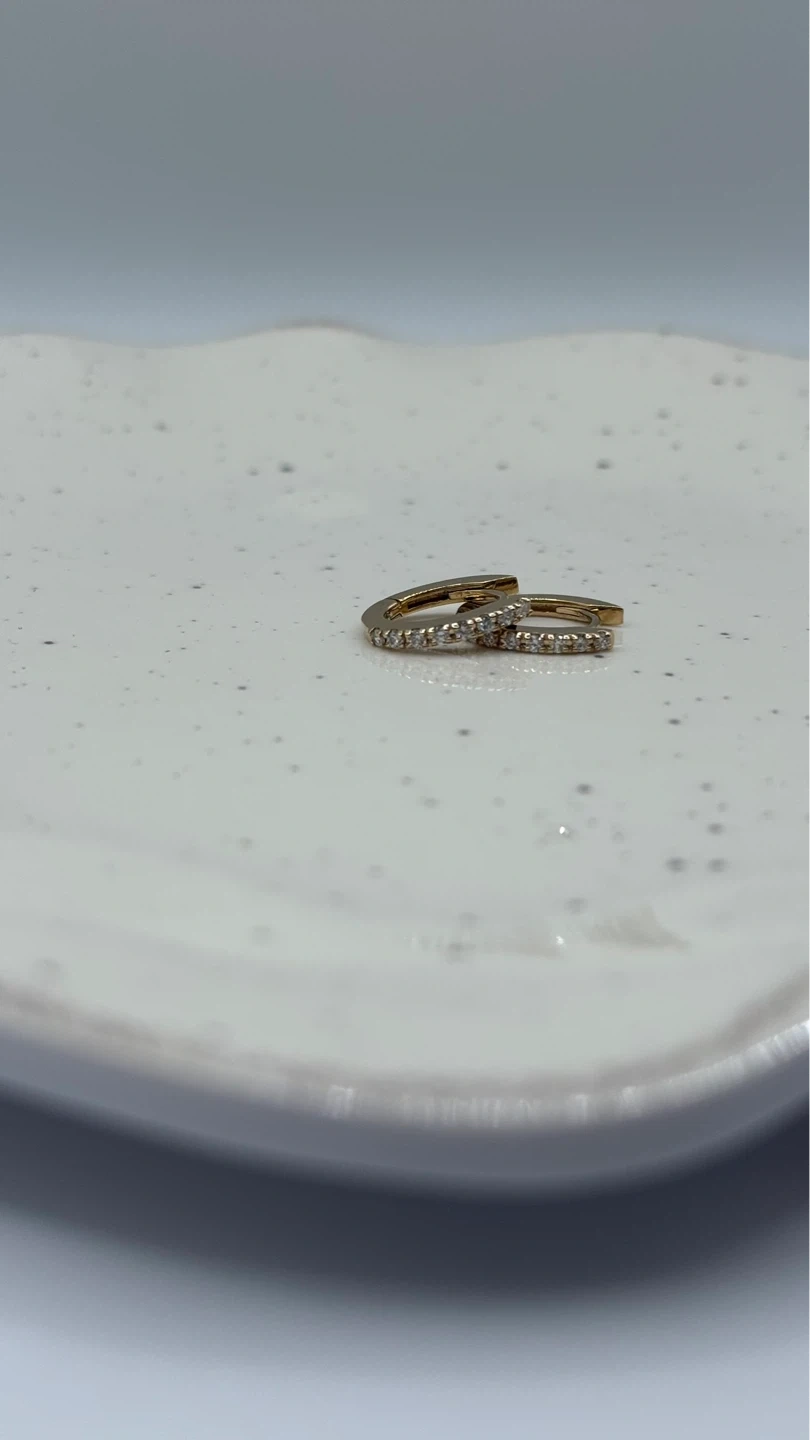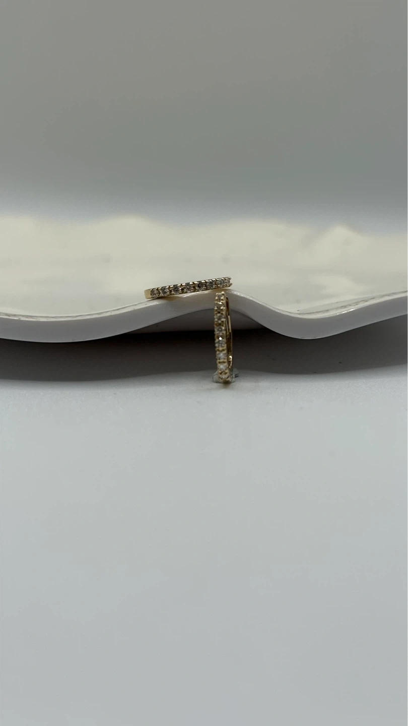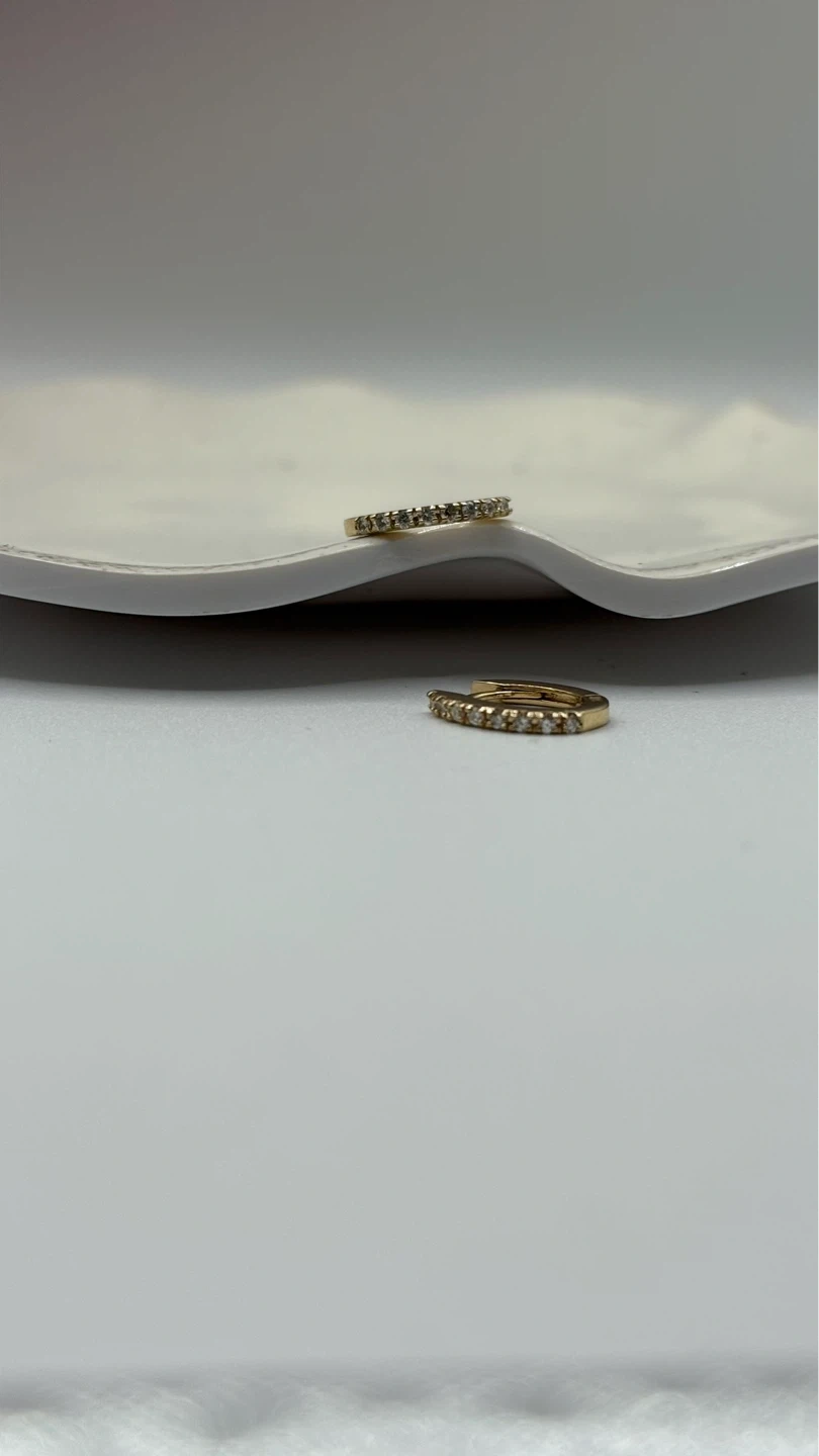 A pair of classic gold hoop earrings with small diamonds. These hoops are designed for everyday wear and add a touch of sparkle. They are made of gold and feature small, shimmering diamonds.