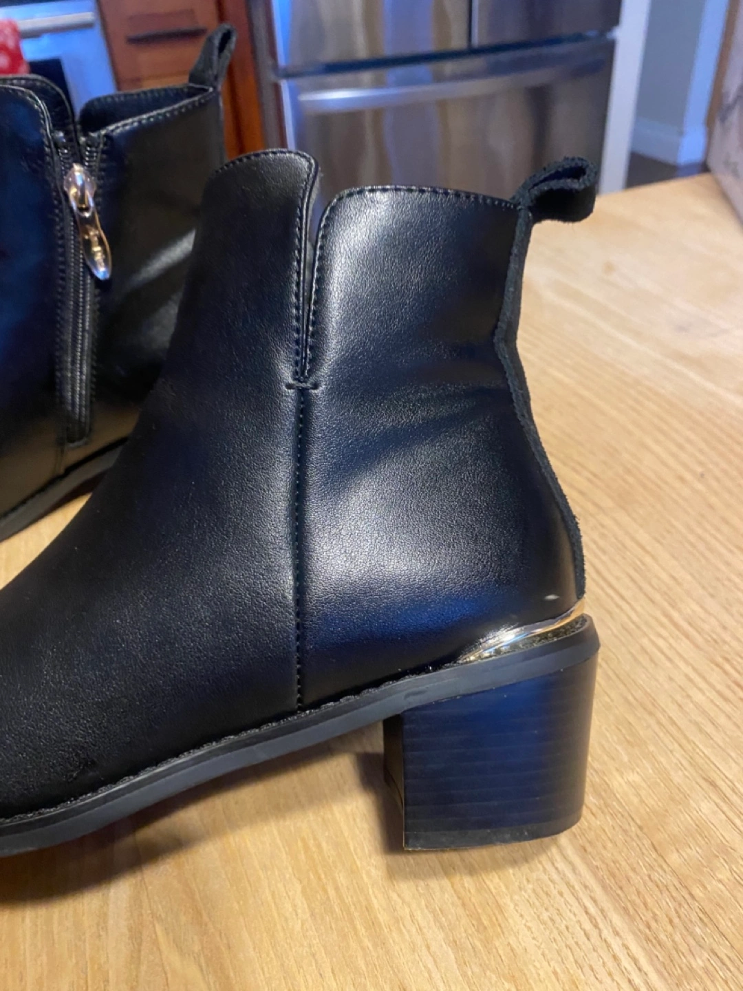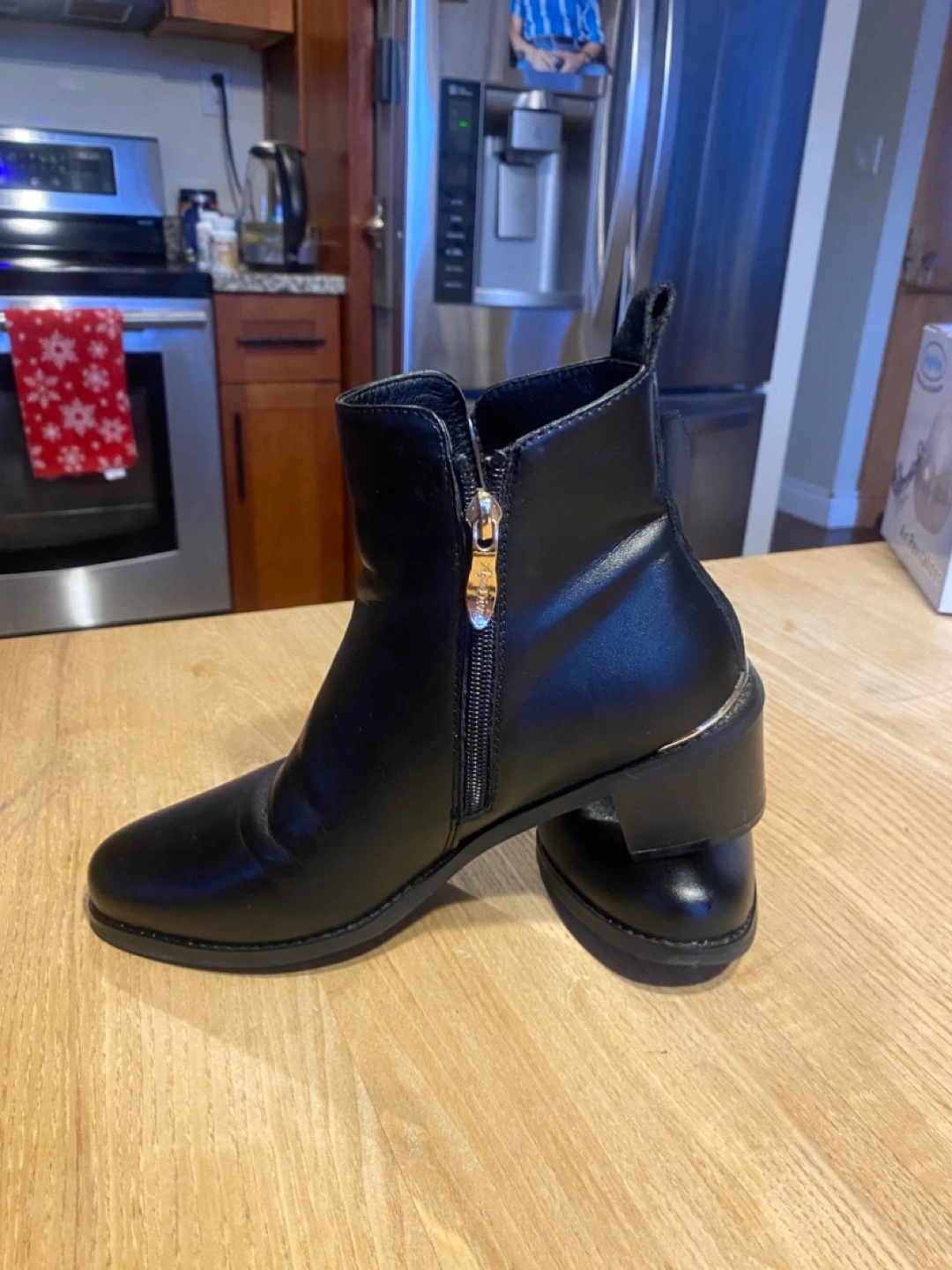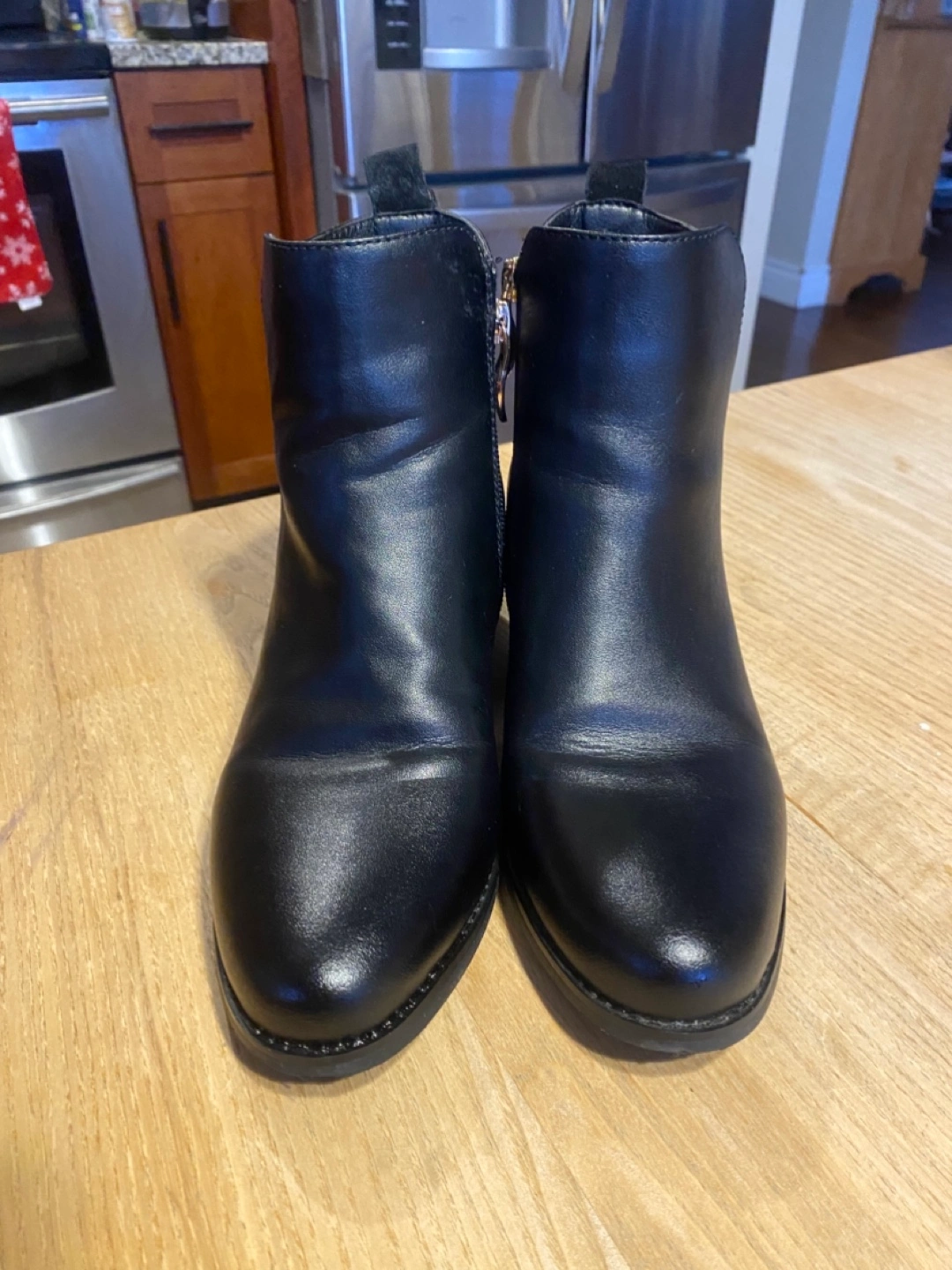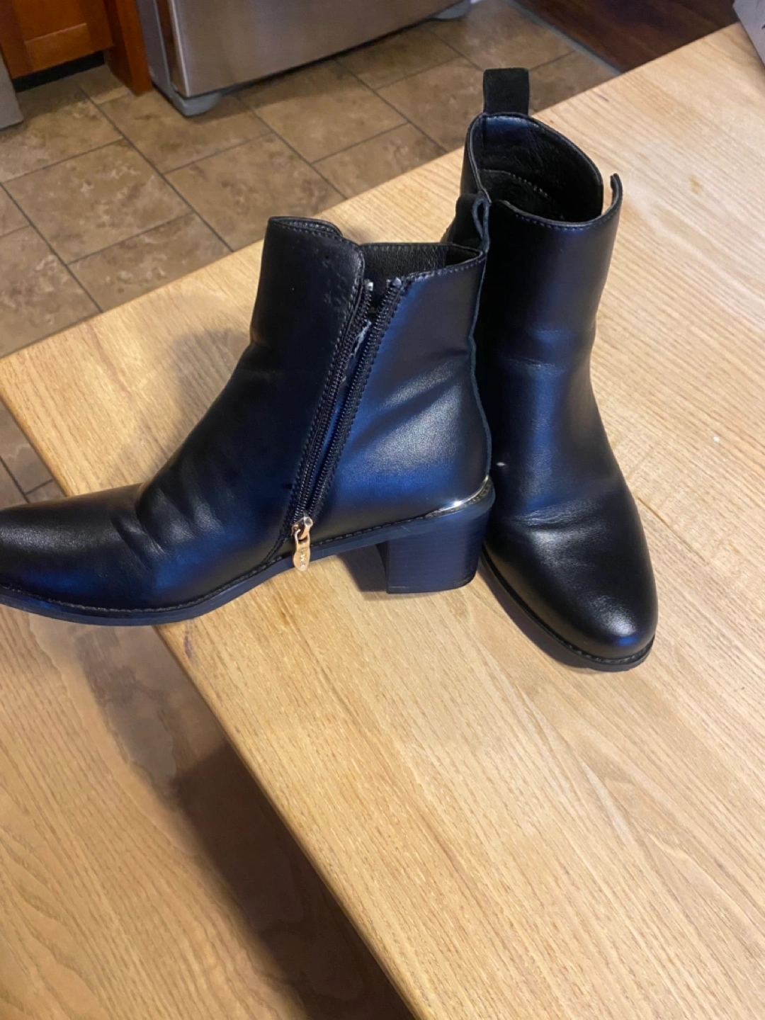 20Black leather ankle boots. Side zipper closure. Low block heel. Size 8 Medium width . Water resistant. These boots have the perfect heel to give you just a little height !