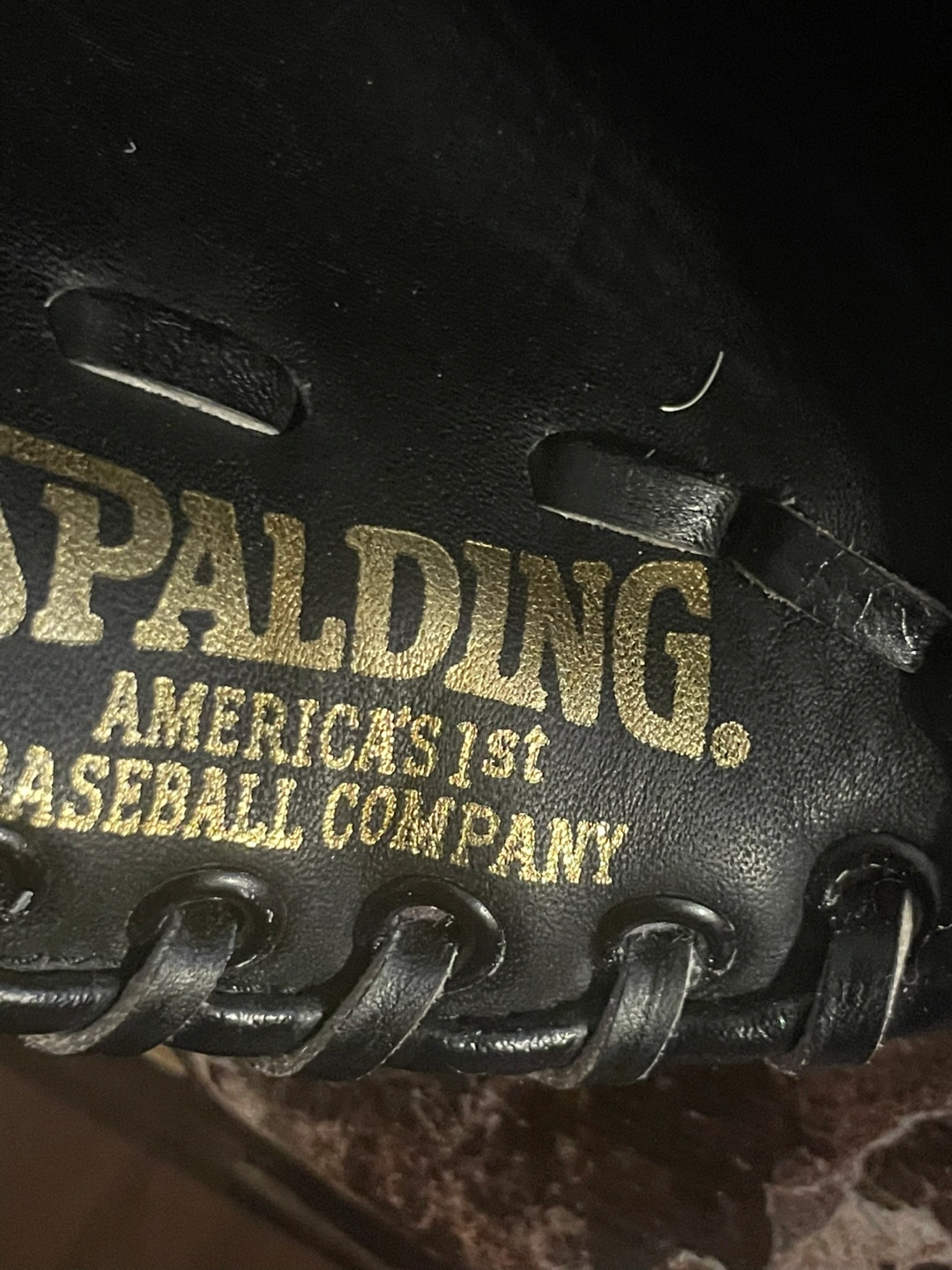 154Used Spalding softball glove. Black leather. Competition series. Aeroback Supreme. Top-grain leather. America's 1st baseball company.
