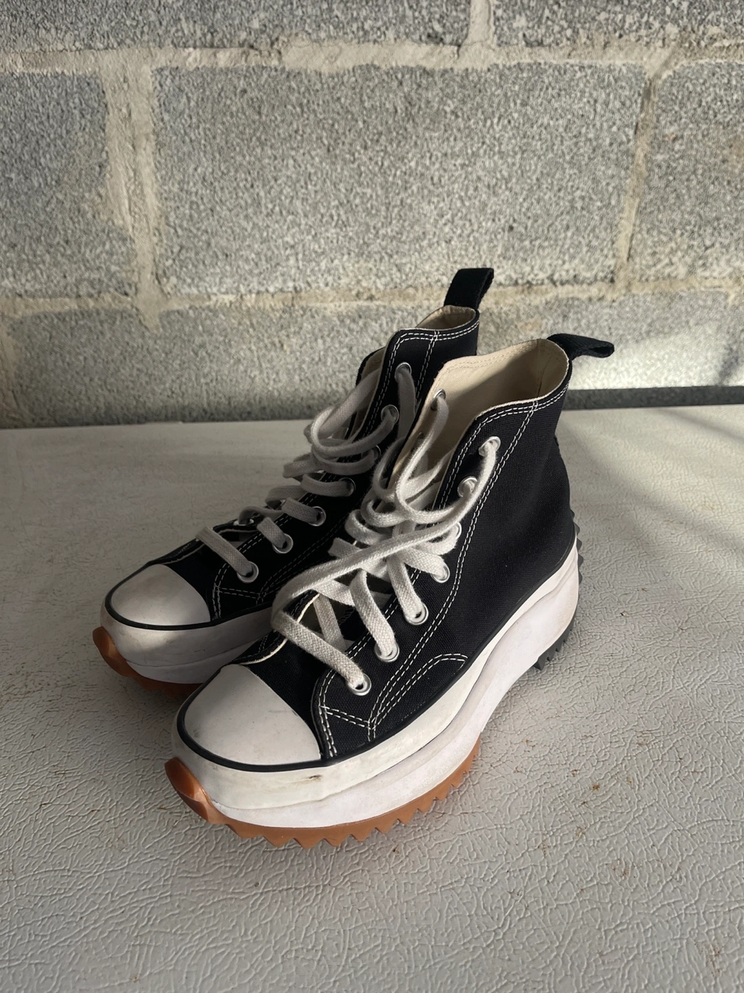 352Black canvas high top sneakers. Chunky platform sole. Lace-up closure. Good condition.