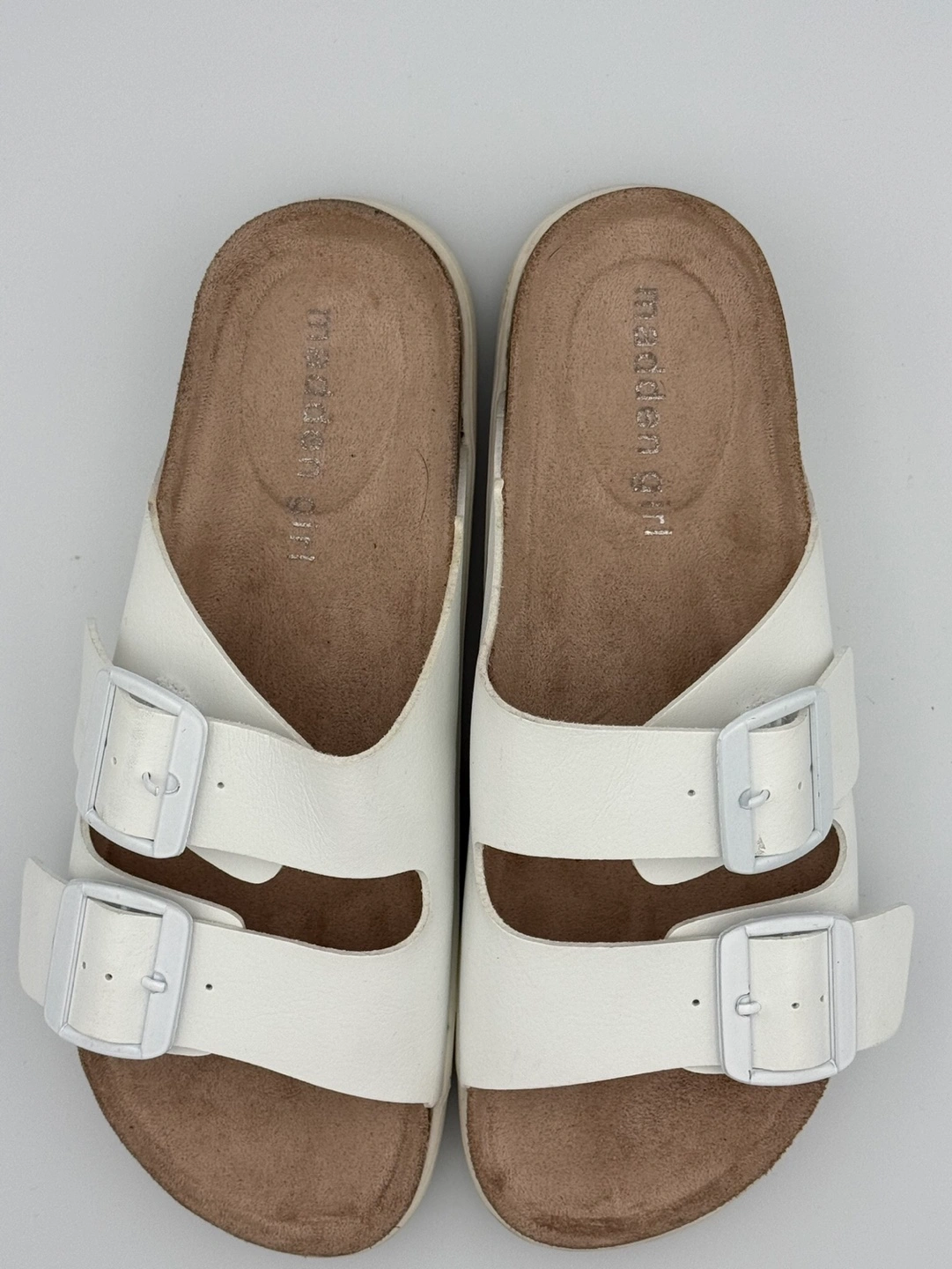 Step into effortless style with these Madden Girl White Sandals, perfect for adding a touch of elegance to any outfit! In good condition, these sandals offer the perfect blend of fashion, comfort, and durability, making them ideal for casual outings, beach days, or summer events. 💖 Why You’ll Love Them: ✔ Stylish White Design – Classic, fresh, and easy to match. ✔ Comfortable Fit – Designed for all-day wear. ✔ Lightweight & Breathable – Perfect for warm weather. ✔ Durable & Well-Maintained – Plenty of life left! ✔ Size 6.5 – Check measurements for the perfect fit! 🌸 A must-have for your wardrobe! Grab these stylish Madden Girl sandals today before they’re gone! 🚀💃