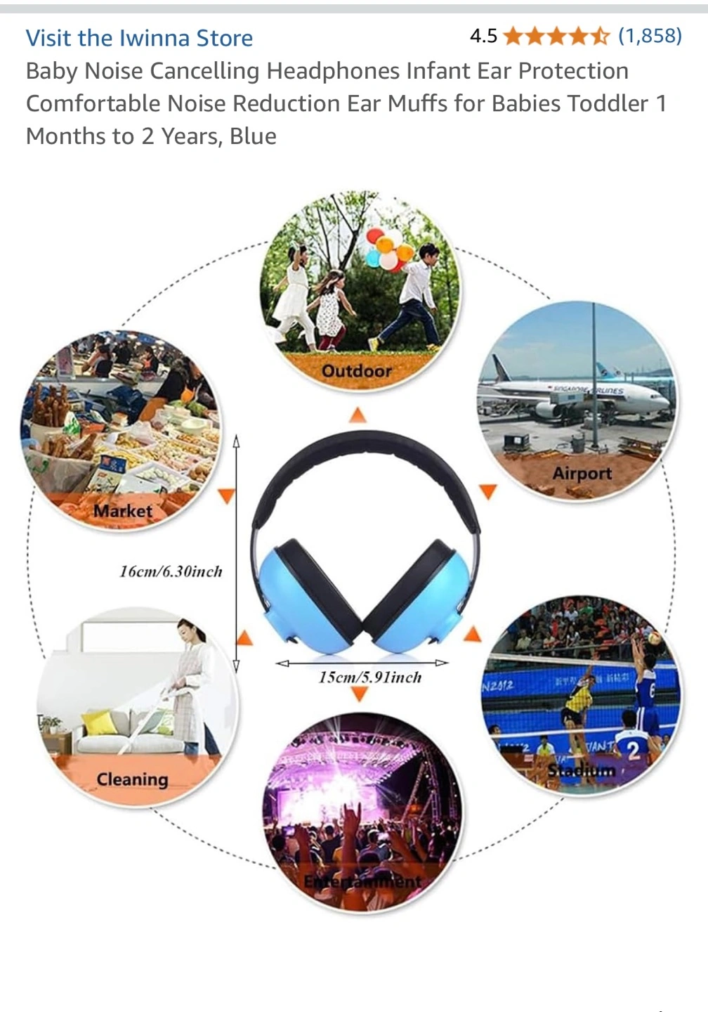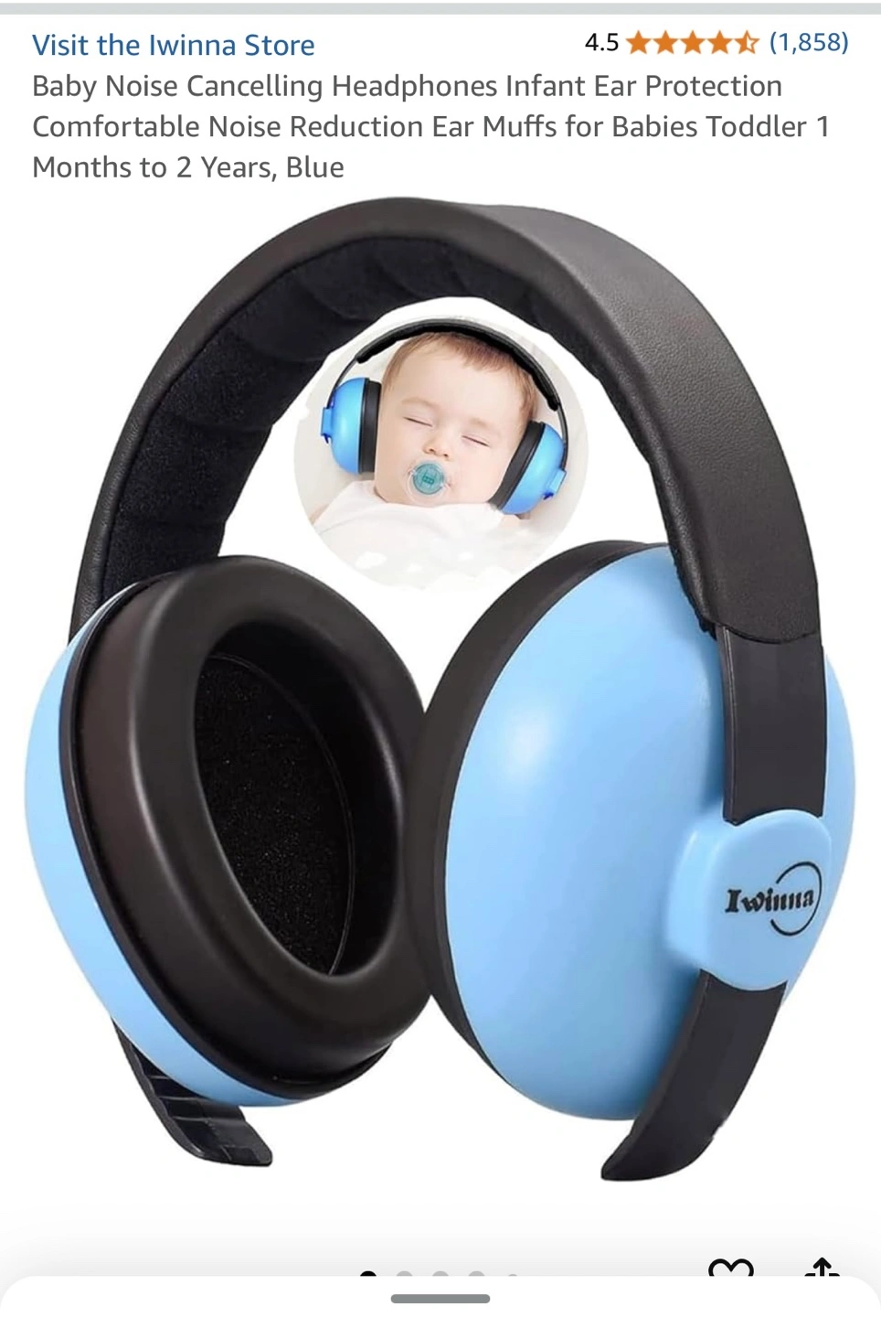 Baby earmuffs, noise reduction. Comfortable and adjustable headband. Perfect for travel, loud events, or home use. Suitable for babies 0-18 months or older. Blue color.