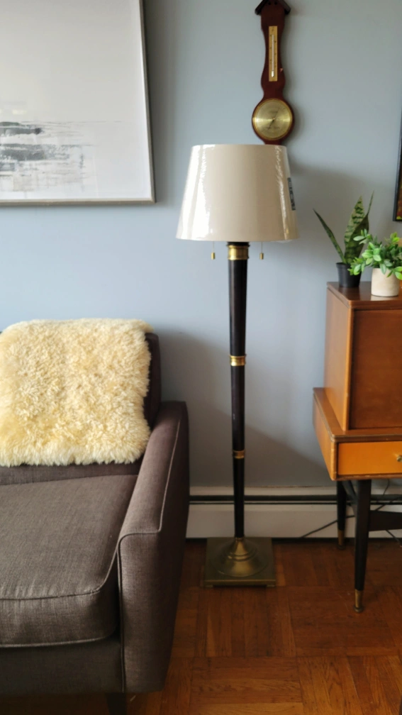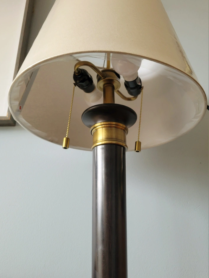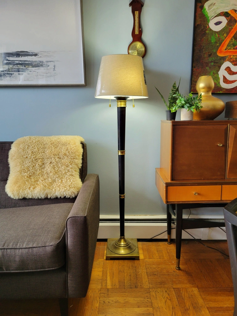 2) Neo classic black & gold double bulb floor lamp with individual switches and a brand new shade.