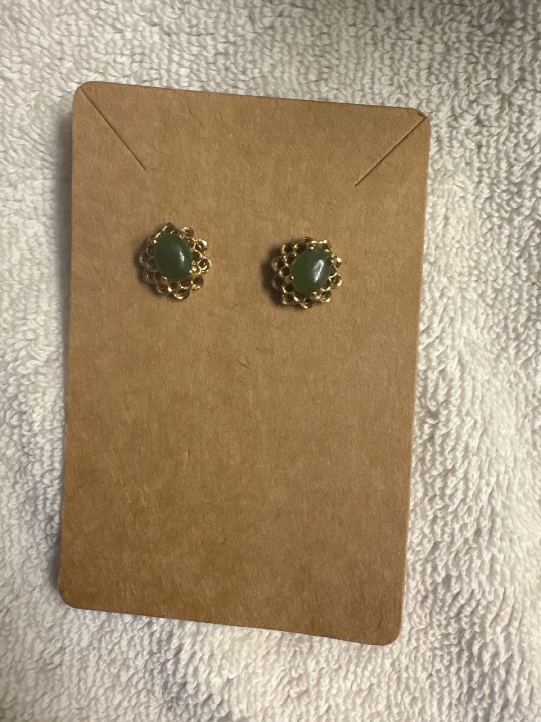 209Cute green stone earrings. Gold-tone metal. Post backings. Great for everyday wear.