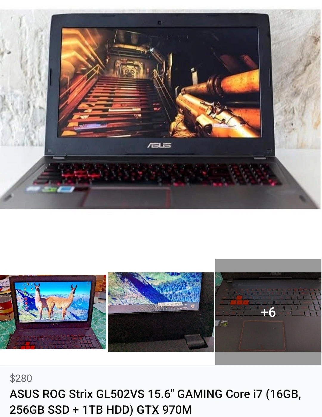 Hello! You Can Buy With Confidence. I'm a Highly Rated/Trusted 5-Star Seller KENDOTRONICS. READ MY 3000+ GLOWING REVIEWS! See Kendotronics dotcom. All products are tested and come with a 14-day warranty! **more pictures available upon request** Pickup or meetup in Brooklyn, Staten Island @kendotronics #kendotronics CHARGER INCLUDED! ASUS ROG GL502VS-WS71 Intel Core i7-6700HQ (12GB RAM, 1TB HDD) 15.6" GAMING Laptop NVIDIA GTX 970M Perfect system for Gamers, Video/Music Editors, Graphic Designers, Vloggers, Programmers, Stock Trading, and high performance apps. Runs all types of modern games - Call of Duty, Minecraft, GTA, World of Warcraft, Steam Games, Roblox, Fornite 4K VIDEOS - EDIT VIDEO/AUDIO, GRAPHICS DESIGN RUN MULTIPLE APPS SMOOTHLY. Processor Intel Core i7 6th Gen Screen Size 15 in Graphics Processing Type Integrated/On-Board Graphics RAM Size 12 GB Hard Drive Capacity 1TB For Gaming, Productivity, School GPU NVIDIA GeForce GTX 970M Processor Speed 2.60 GHz Brand ASUS Series ROG Model GL502V 98TY20059097JK