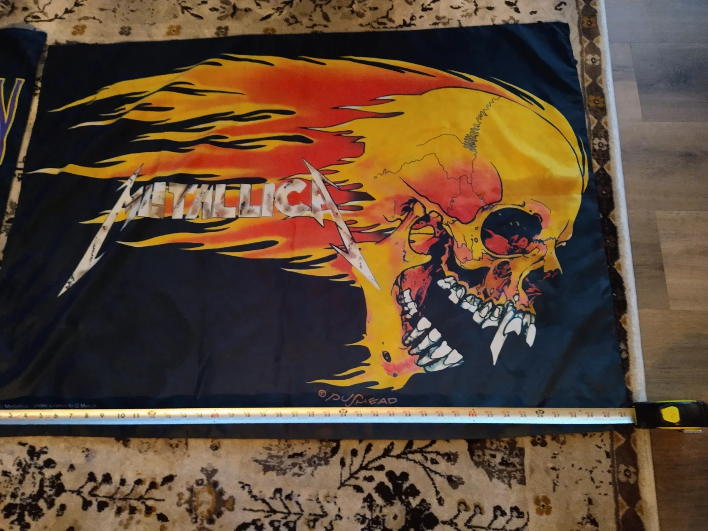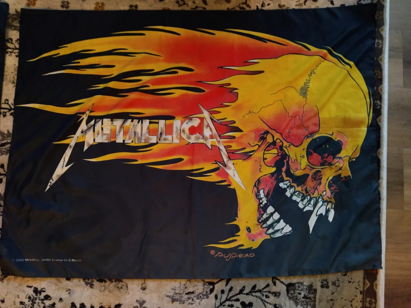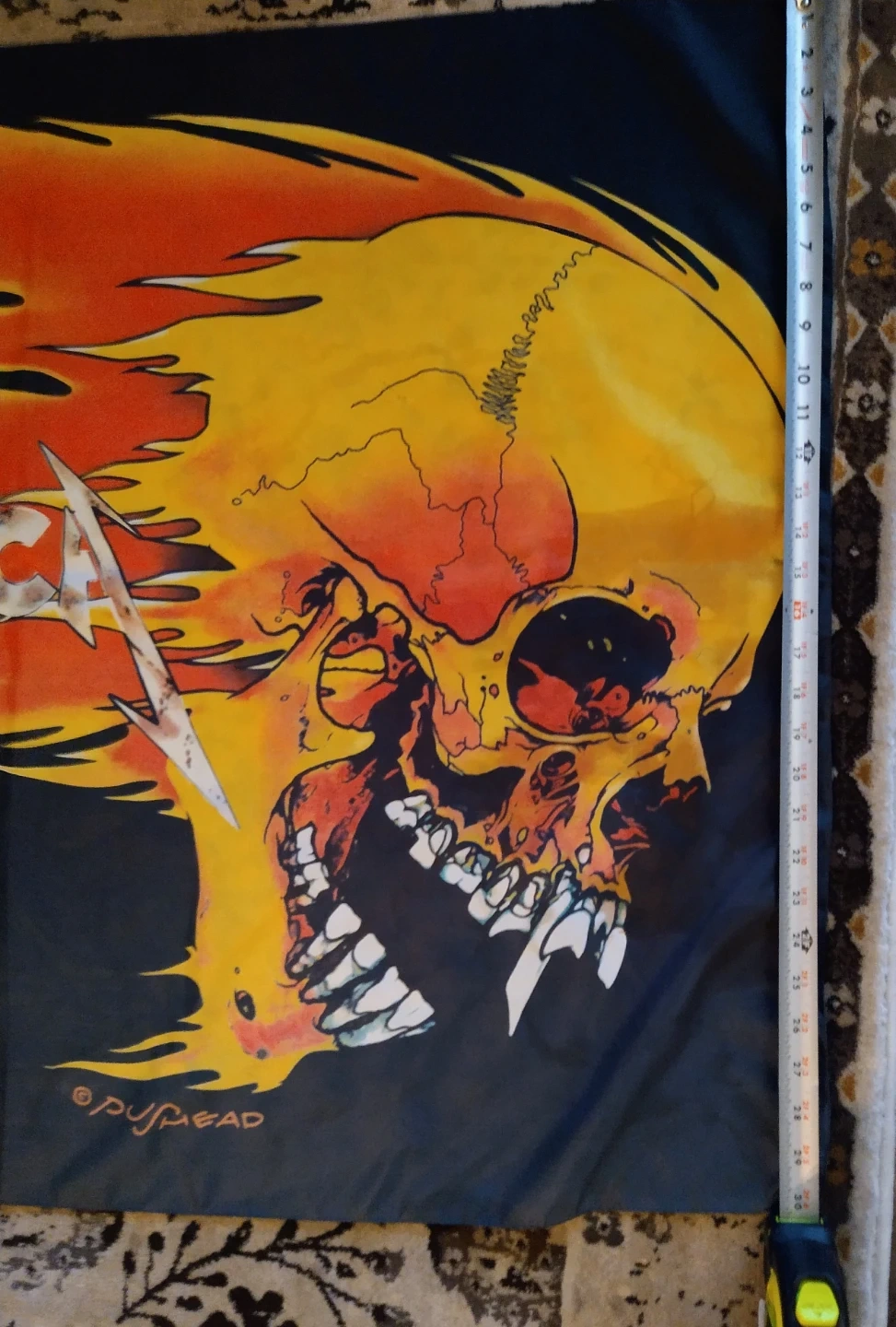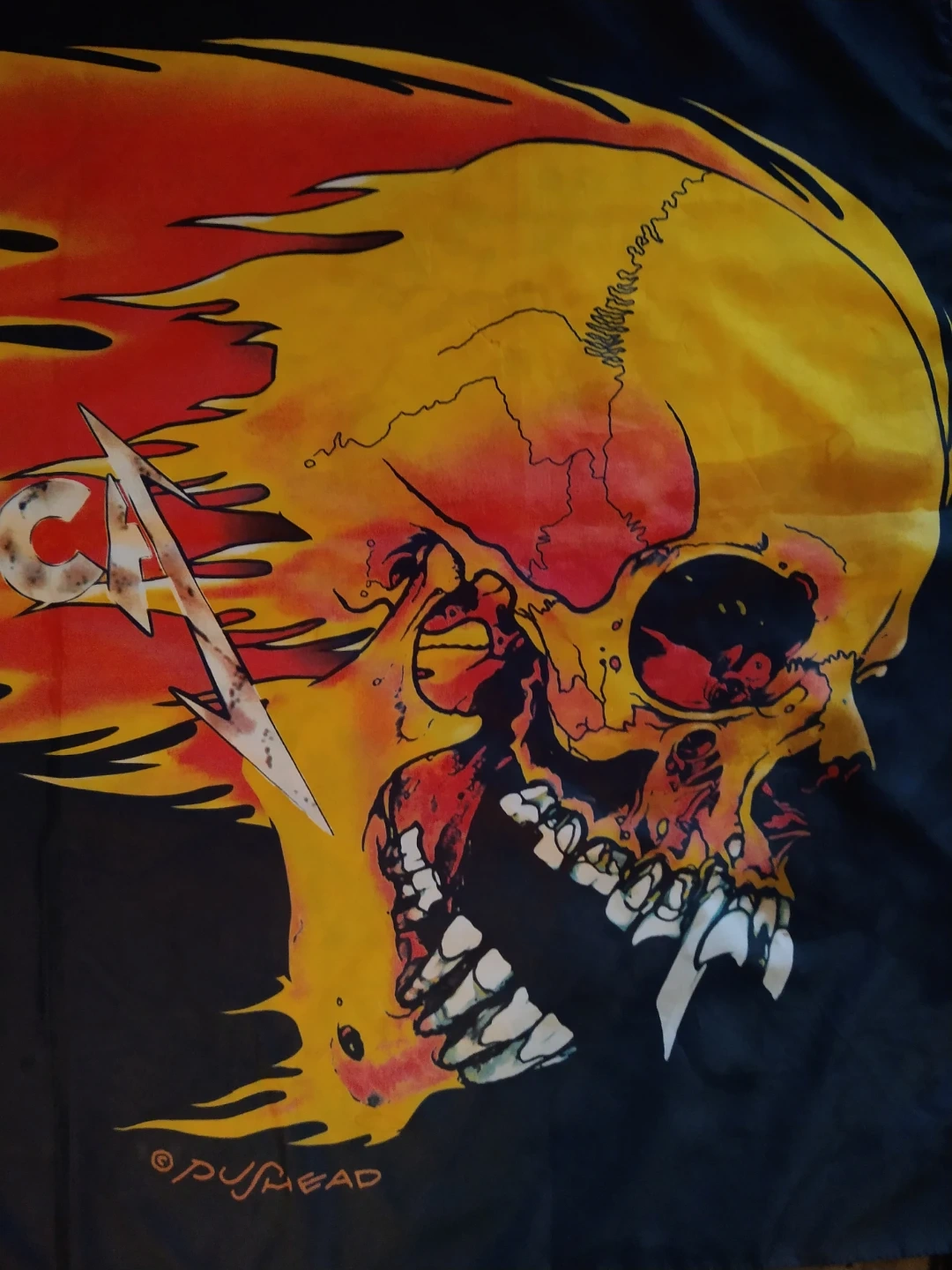 • Vintage 2000 Metallica Pushead Flaming Skull Wall Tapestry