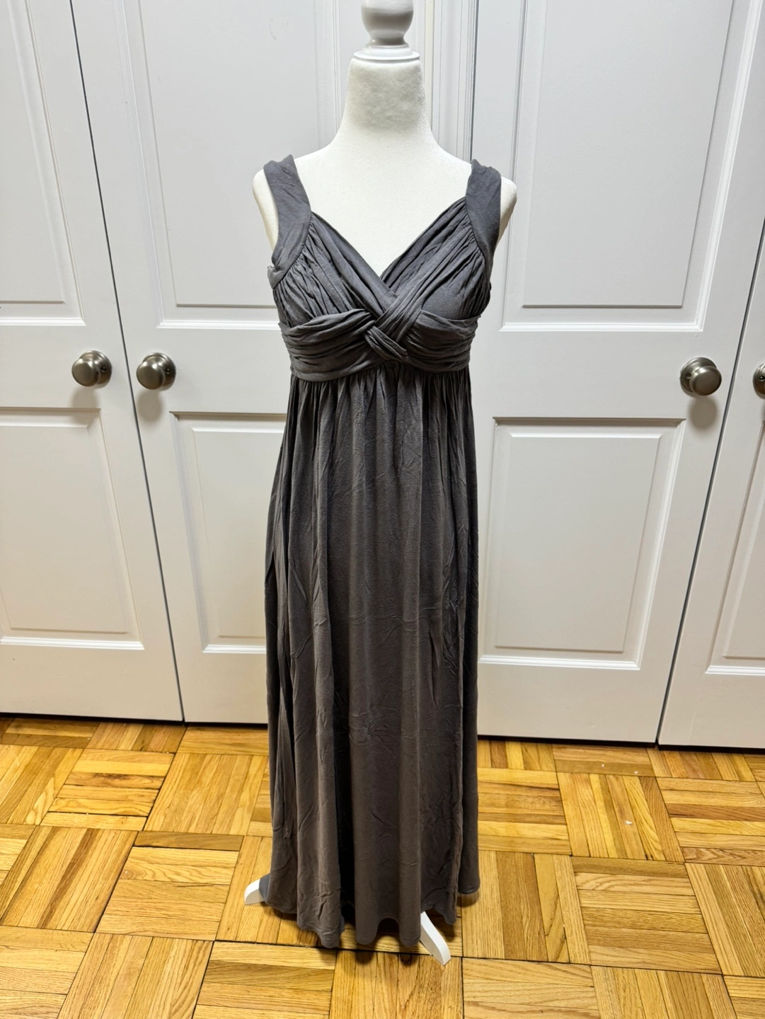 346Beautiful gray maxi dress. Features a V-neck and empire waist. Sleeveless. Great for summer events. Pickup is on 72nd and 1st in Manhattan. Preference given to whoever schedules pickup first. If you are looking to purchase online - check out my eBay store: https://www.ebay.com/str/ssomadesign