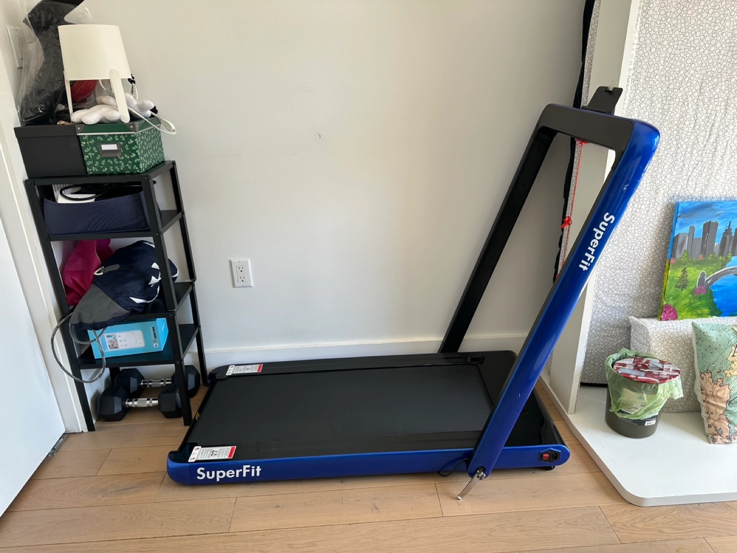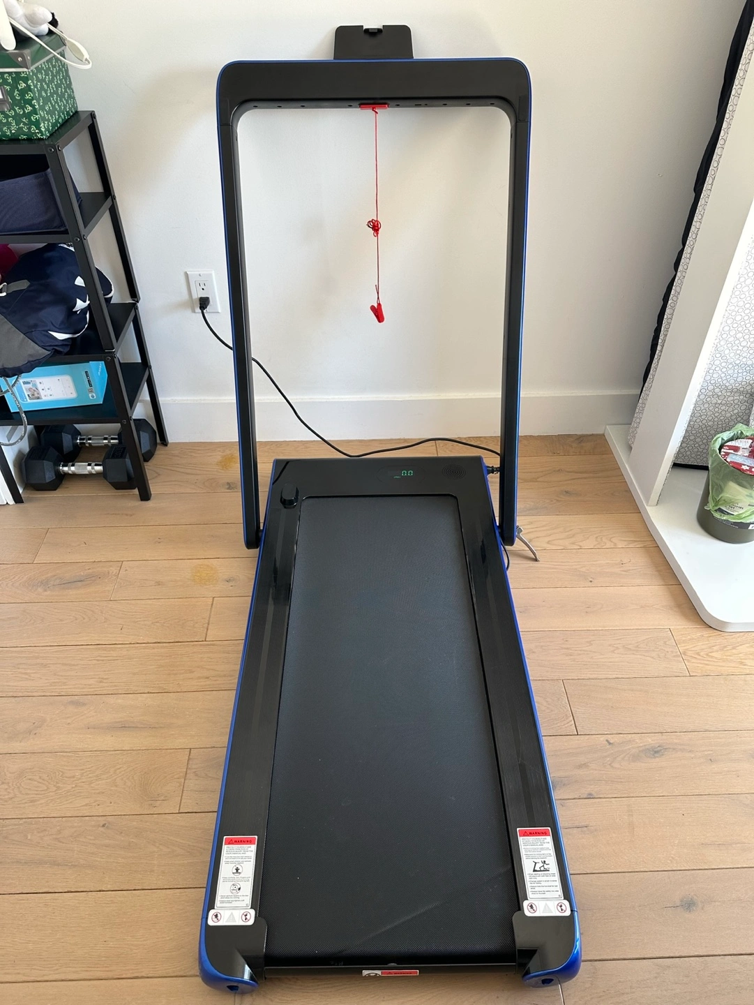 Elevate your fitness routine with a pristine folding treadmill! Perfect for work breaks as it fits under your desk or cardio sessions (speed: 11km/h). Includes accessories (included lubricant to keep it as new too), embedded speaker for music which connects to your phone by Bluetooth, and remote control. Don't wait, grab this opportunity now! ๐โโ๏ธ๐ถ
