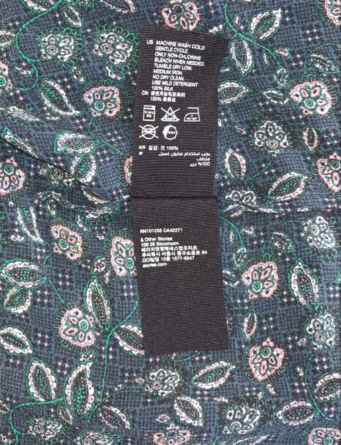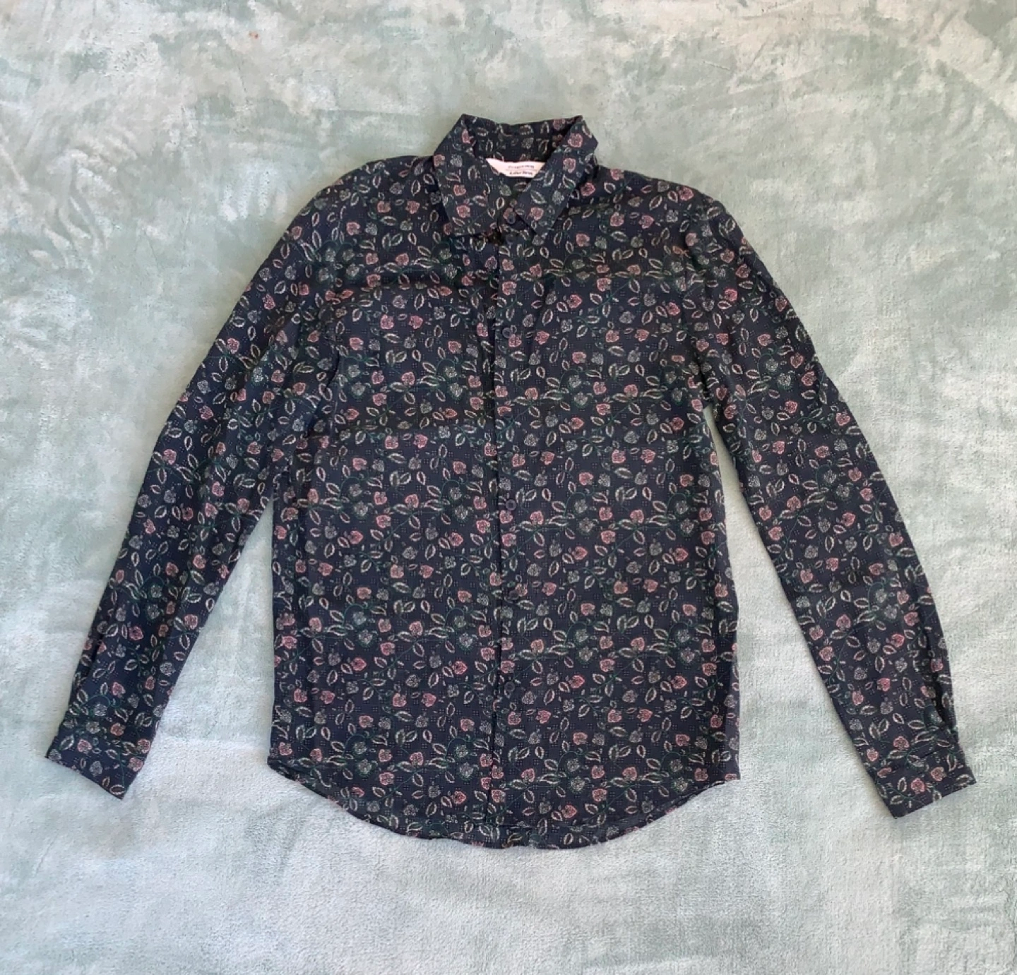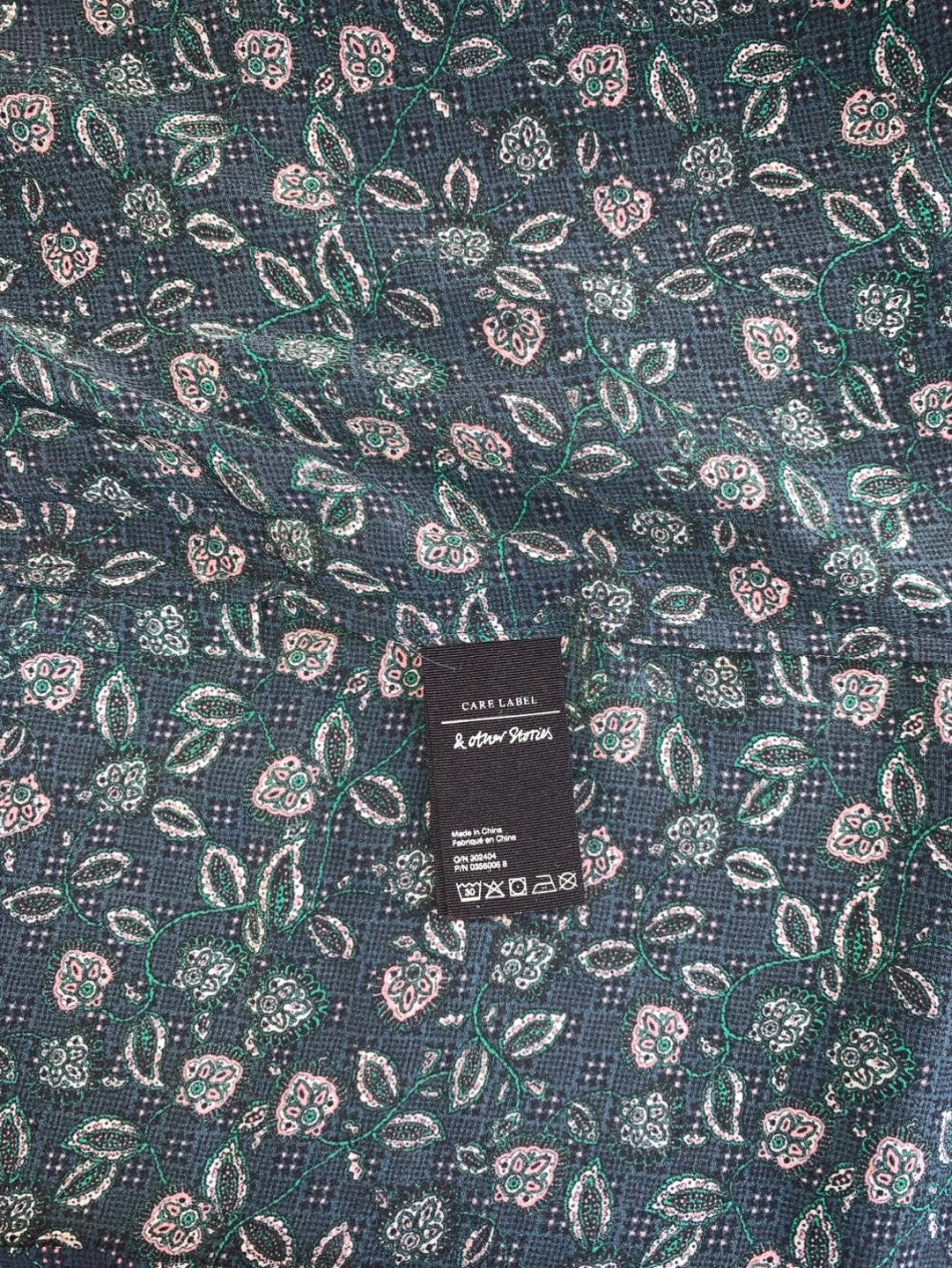 395Long sleeve button-down shirt. Dark floral print. Size 0. Excellent condition. 100% silk Machine wash cold