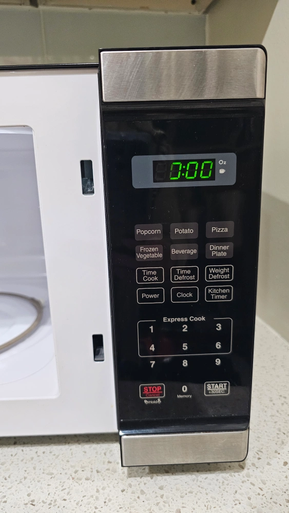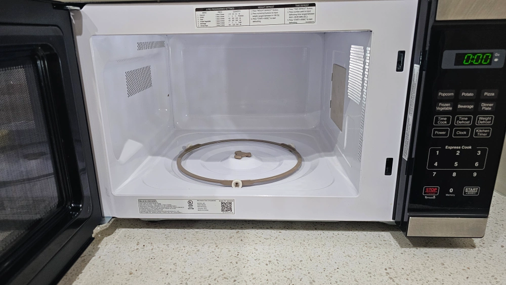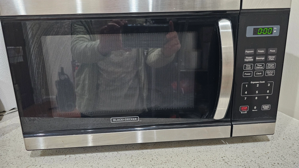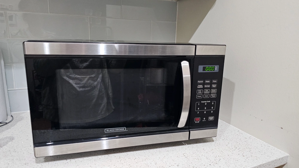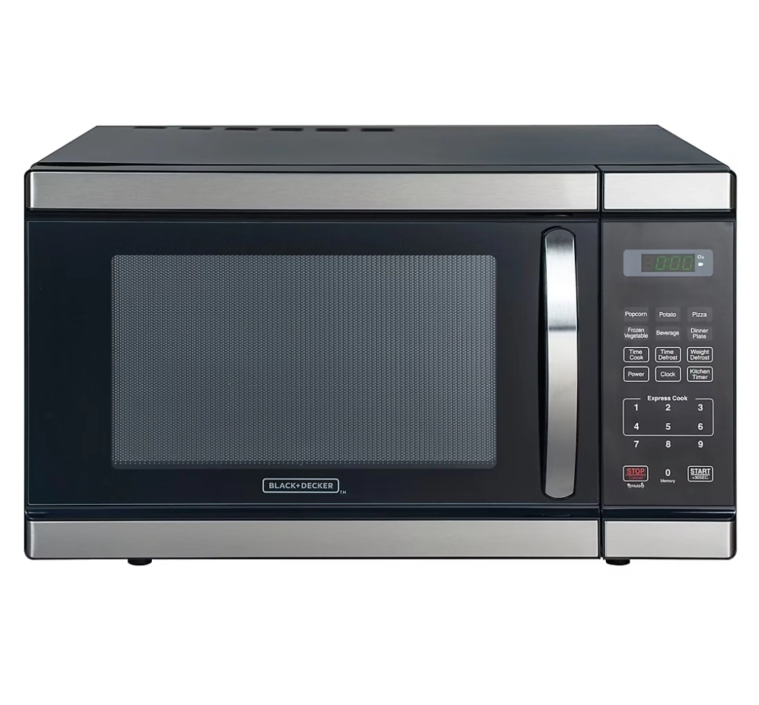 365Black + Decker microwave. Stainless steel finish. Digital controls. Multiple preset options. Good condition. Black + Decker 1.1-Cu.-Ft. 1000W Microwave - Stainless Steel