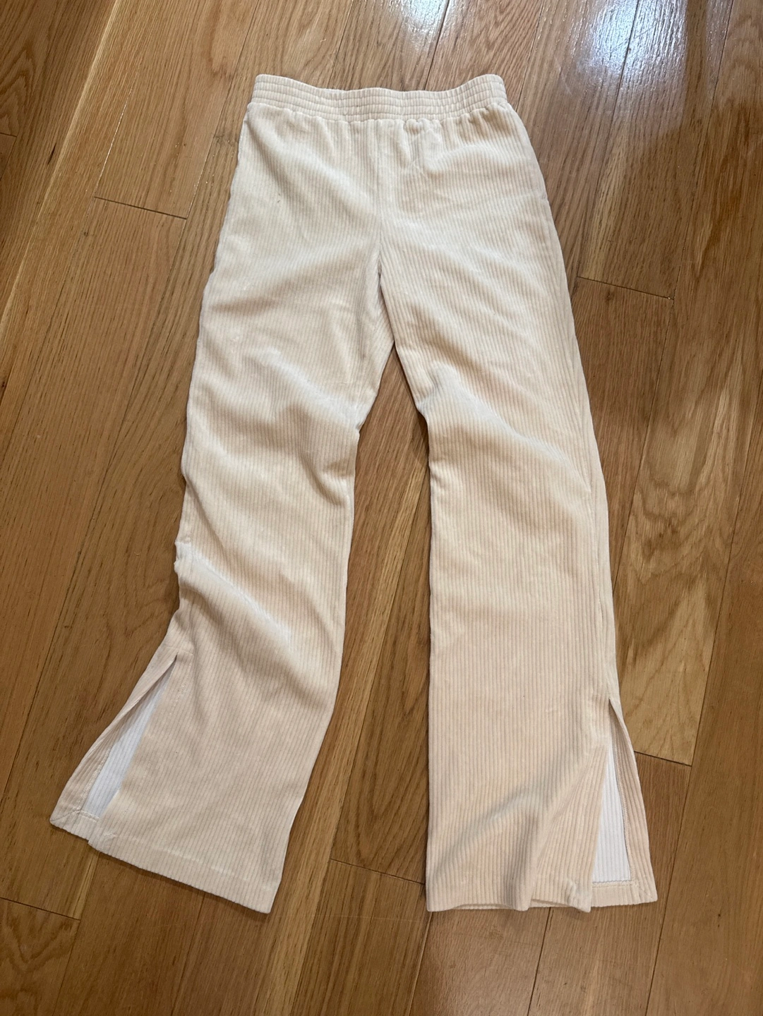 130Wide-leg corduroy pants with Elastic waistband. Side slits. Cream color. Worn once