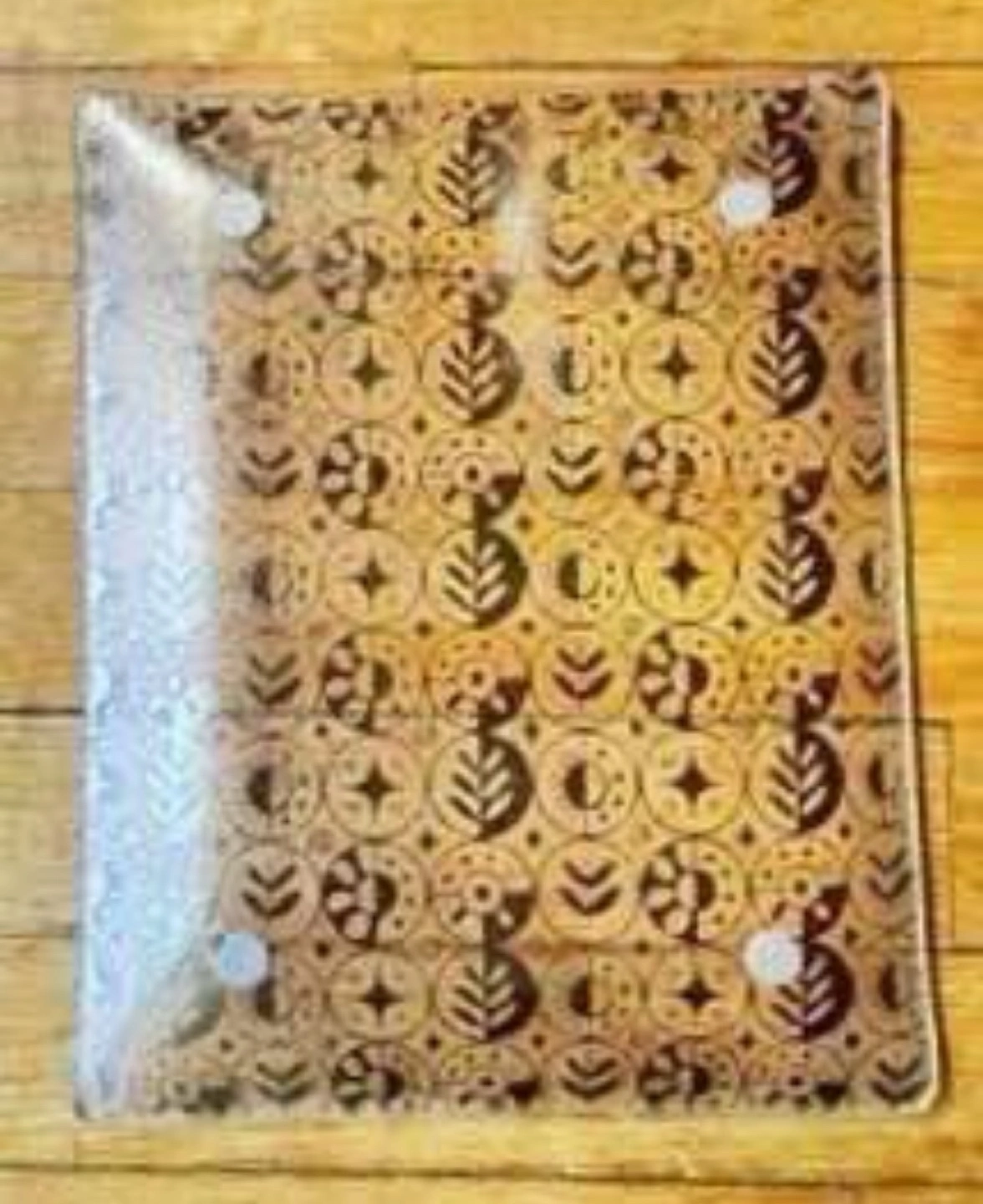 Decorative Glass Tray with Gold-Tone Etchings, Like New