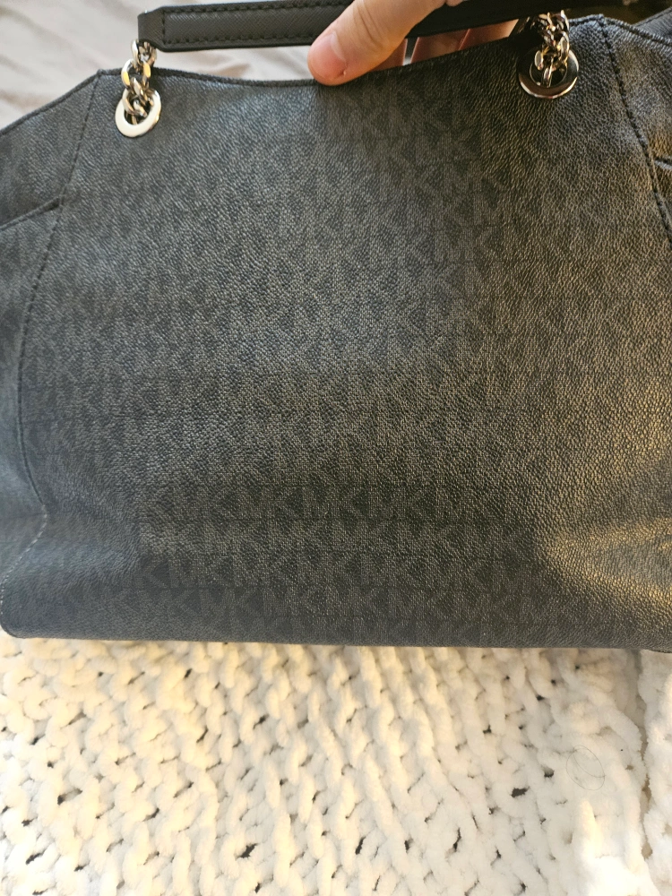 Black MK tote bag. Features a chain strap and signature MK logo. Spacious interior. Excellent for everyday use. can send more pictures if wanted