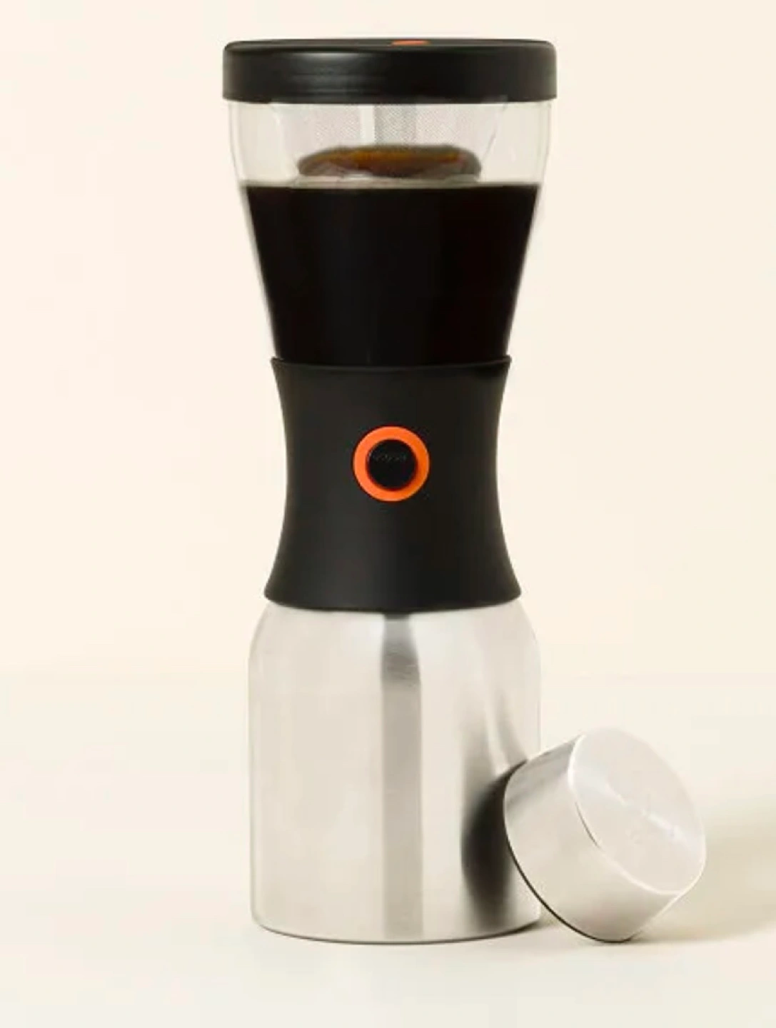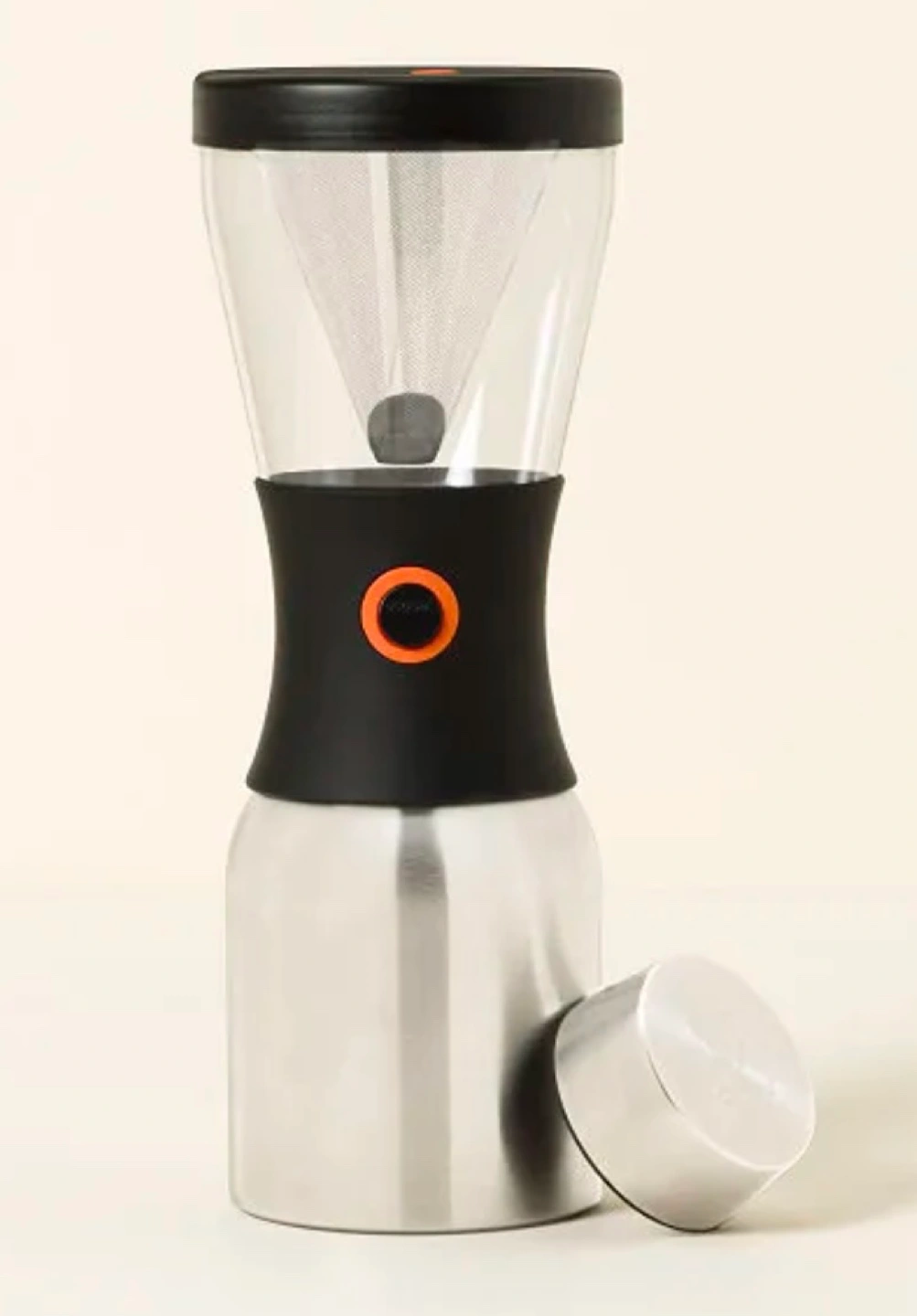 Simplify your steeping and take your fresh cold brew to go with this maker and carafe in one. Add coarse grounds and a slow, circular pour of cold, filtered water to the top brewing chamber and let it steep for 12 to 18 hours at room temperature. Then, just press the button and let gravity fill the insulated steel carafe. Add ice, your favorite milk and sweetener, and the leak-proof lid. The insulated steel carafe keeps coffee cold for up to 24 hours— because nobody likes to lose their chill halfway through the day.