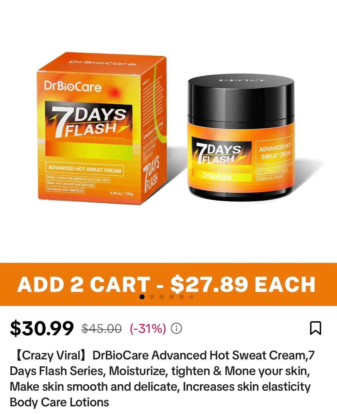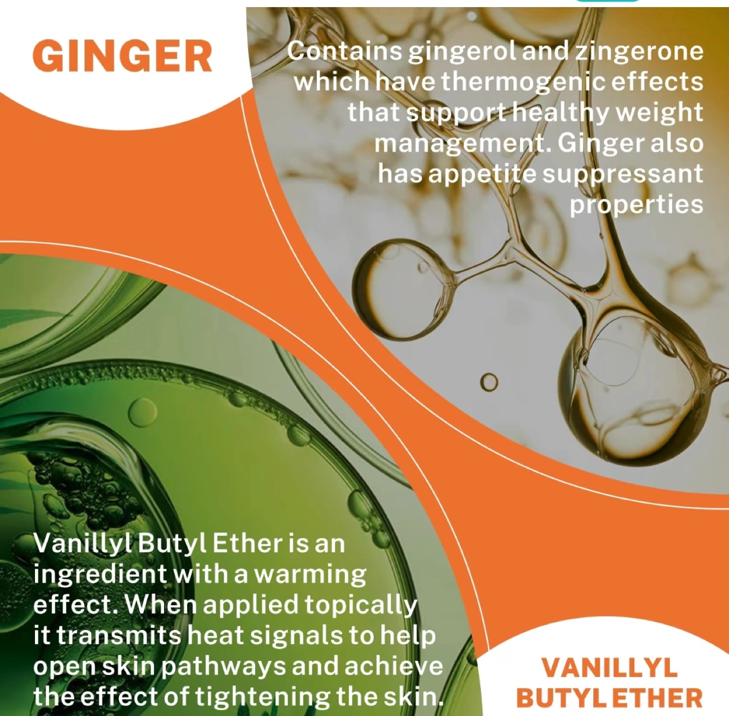 275New formula body cream. Helps moisturize, tighten, and tone skin. Increases skin elasticity. Contains caffeine, ginger, and vanillyl butyl ether. 7-day flash series.