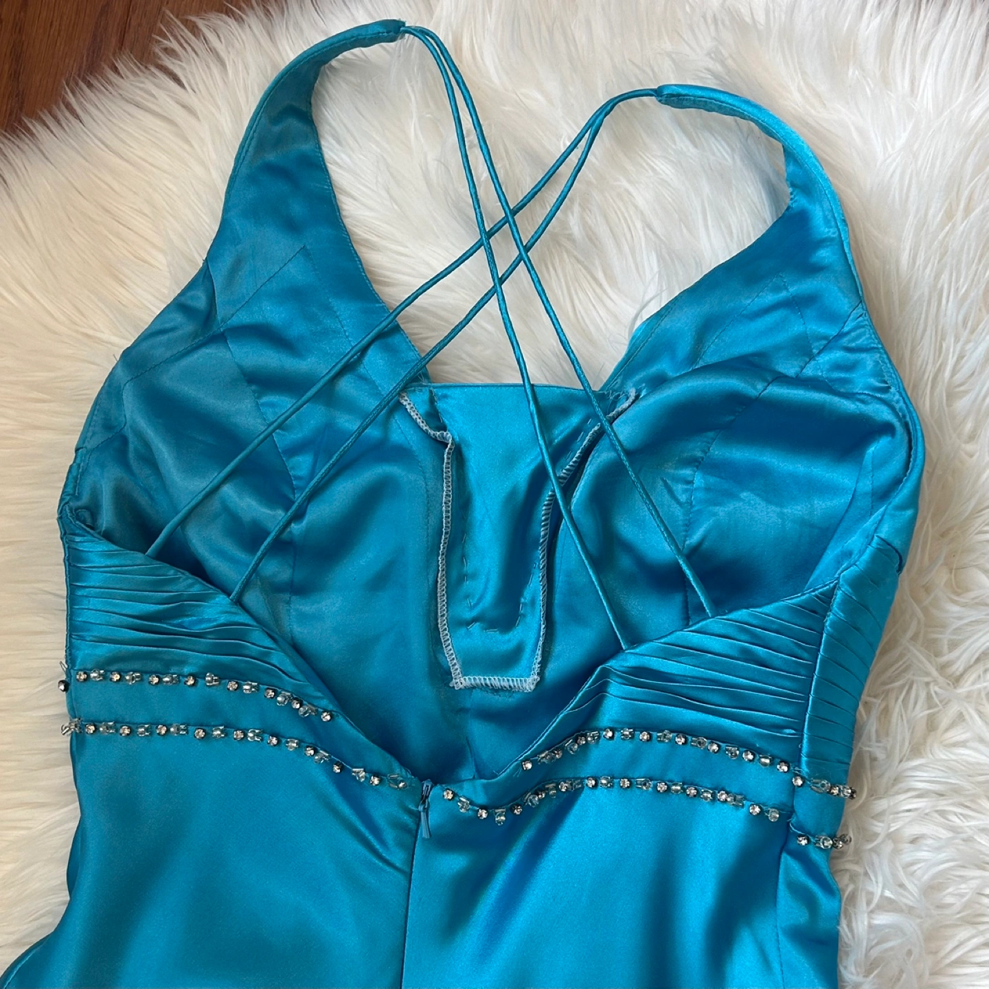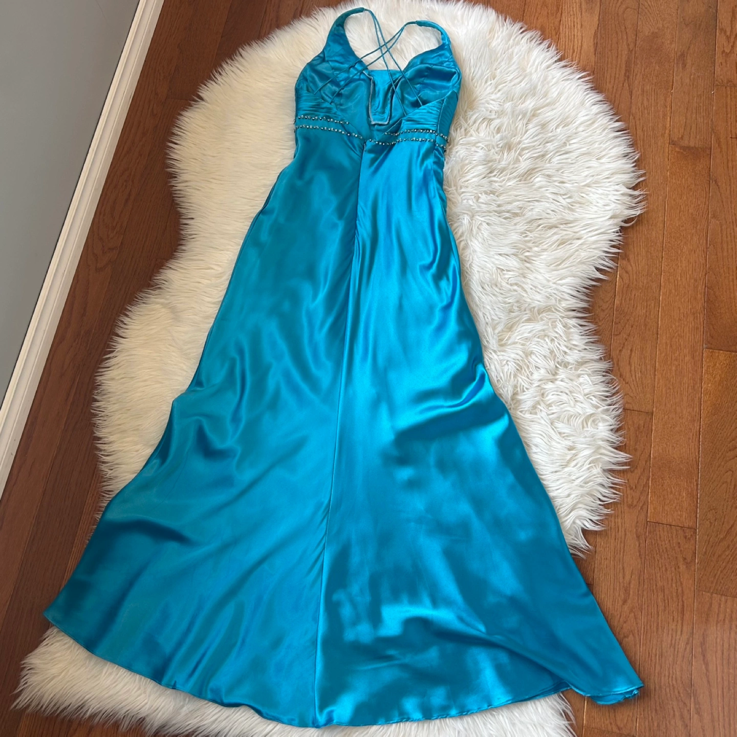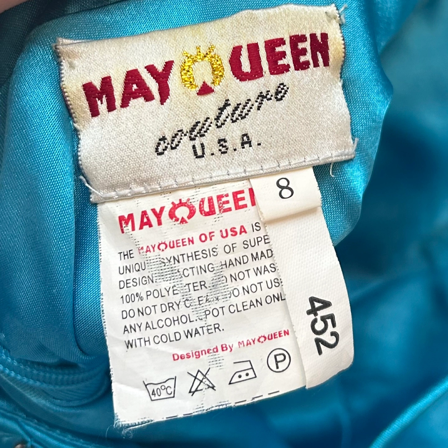 May Queen Rhinestone Embellished A Line Satin Prom Gown Size 6