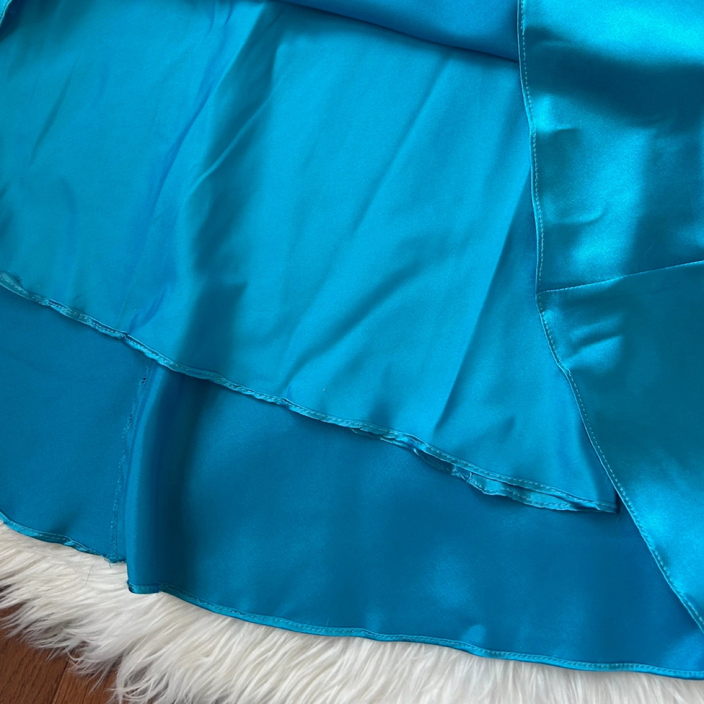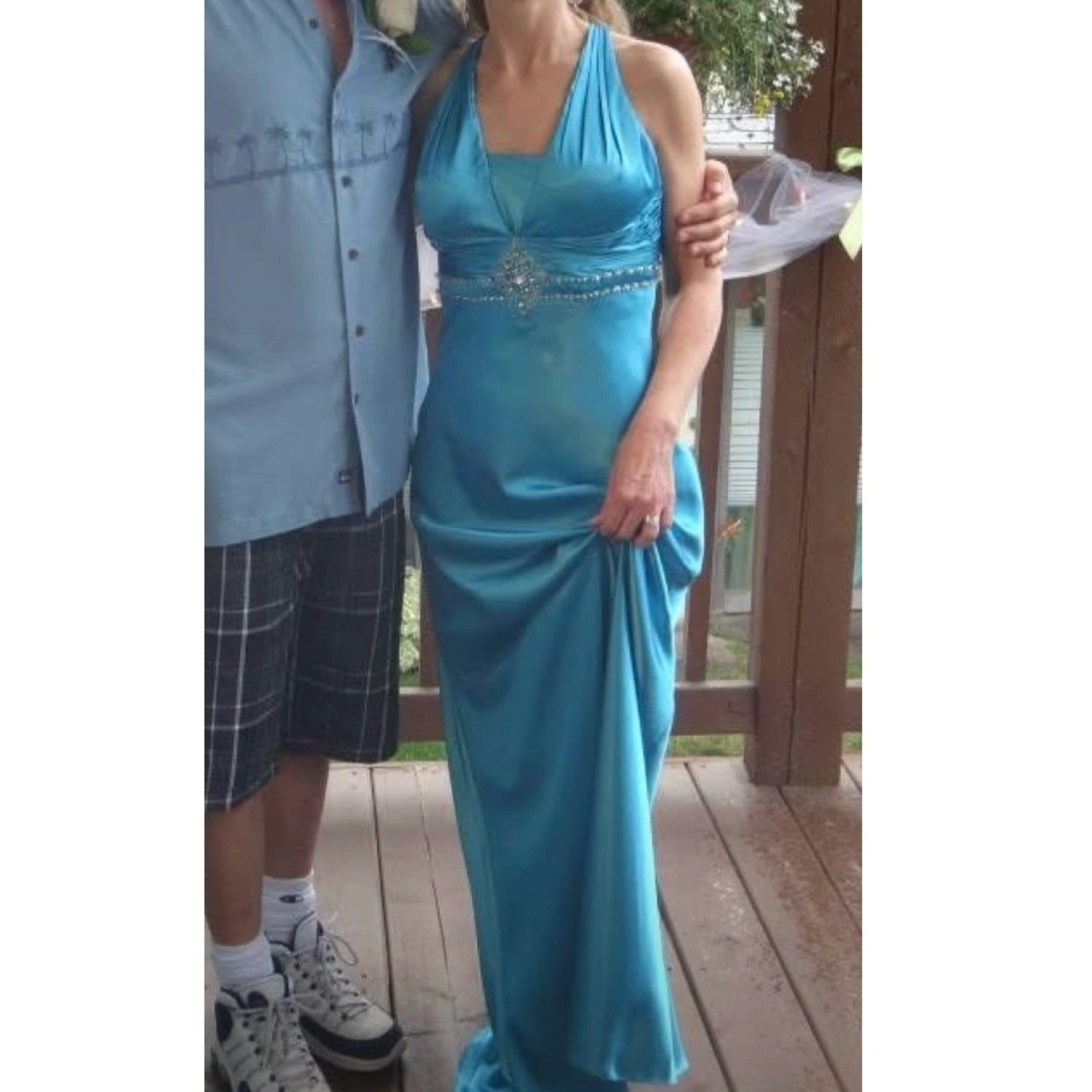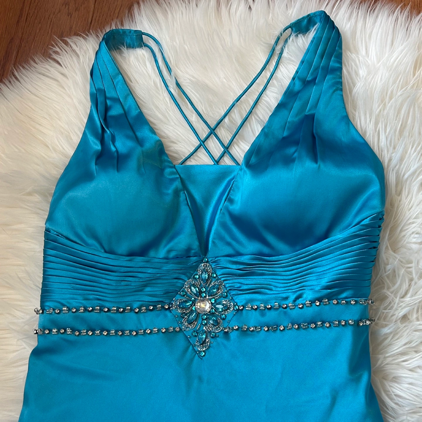 May Queen Rhinestone Embellished A Line Satin Prom Gown Size 6