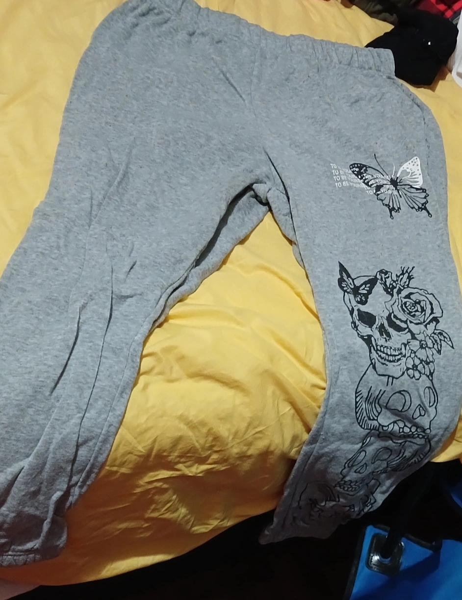 1000+Gray sweatpants featuring a skull and butterfly graphic design. Soft material. Comfortable fit. #freecycle I'm giving this purchase, because it doesn't fit me