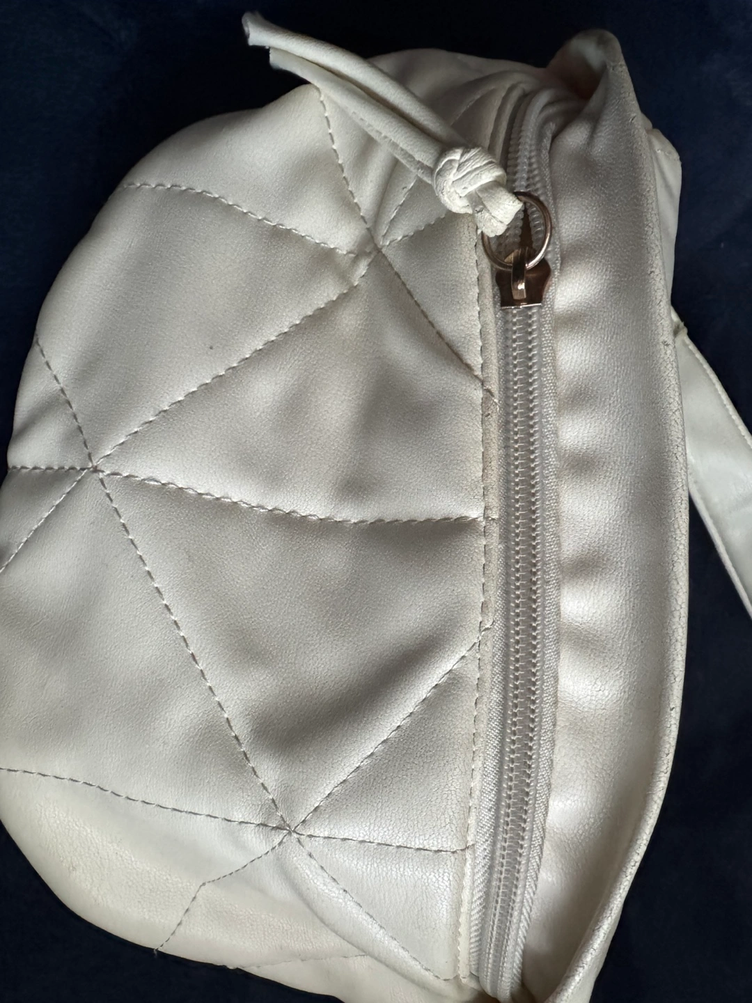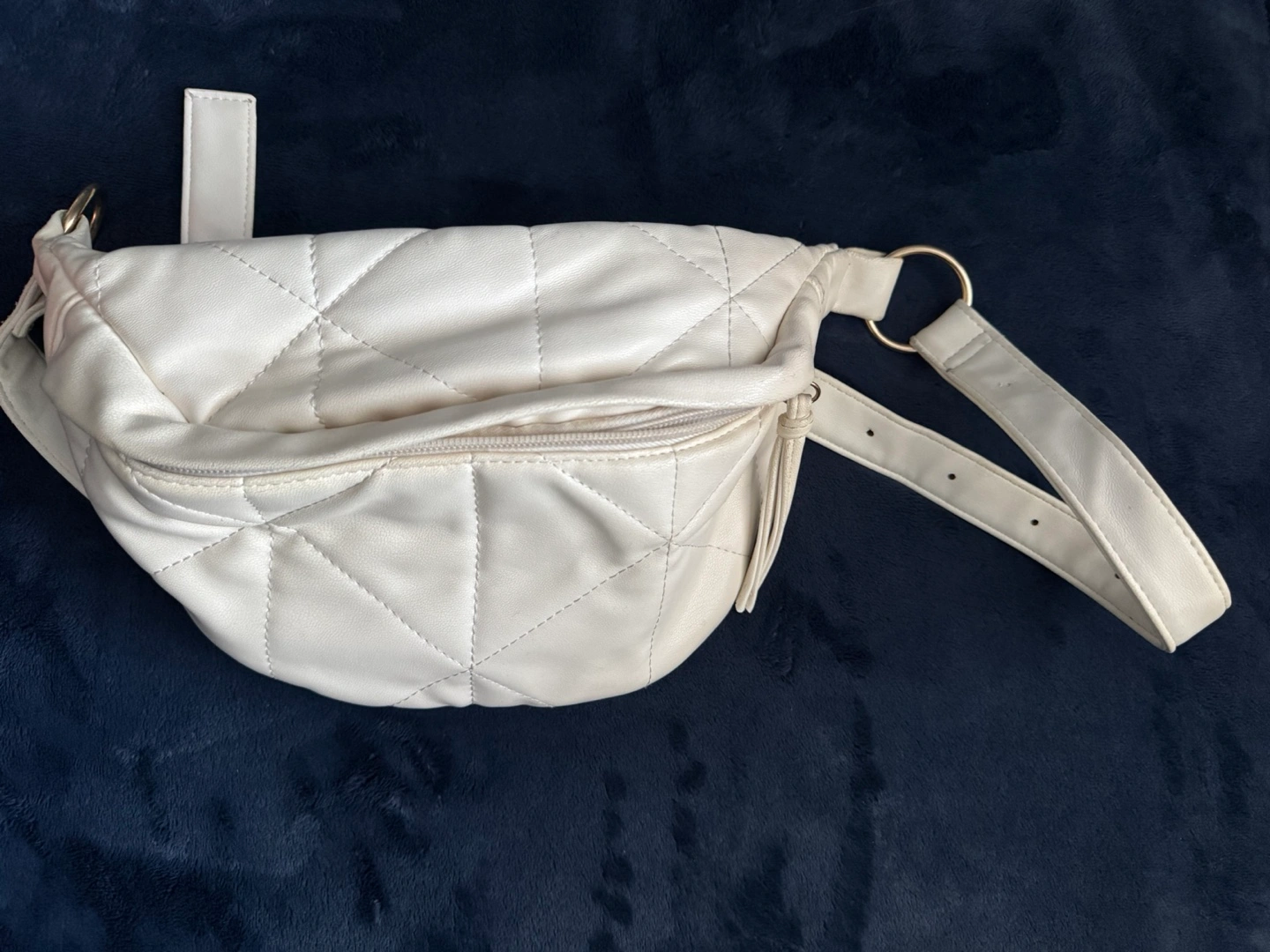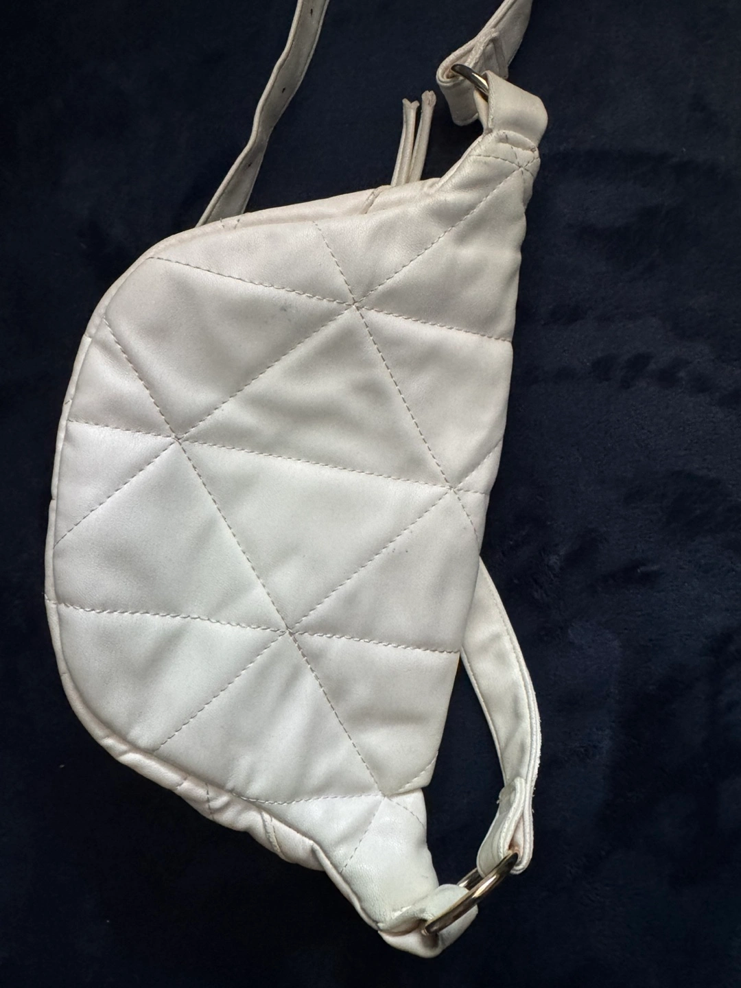163Adorable white fanny pack. Features a quilted design and adjustable strap. Zipper closure. Perfect for everyday use.
