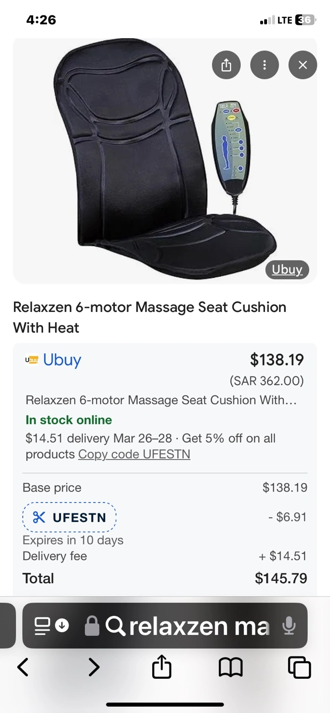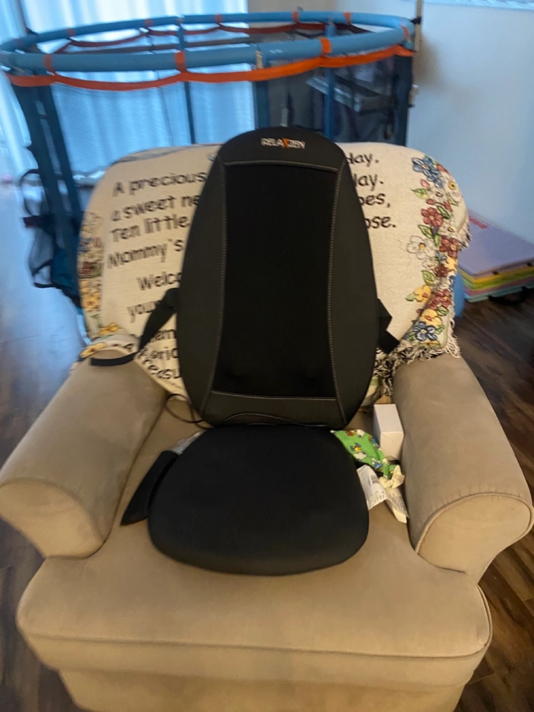 20Massage seat cushion. Six motors. Heated. Excellent for back support and relaxation. Includes additional lumbar support cushion. Like new.