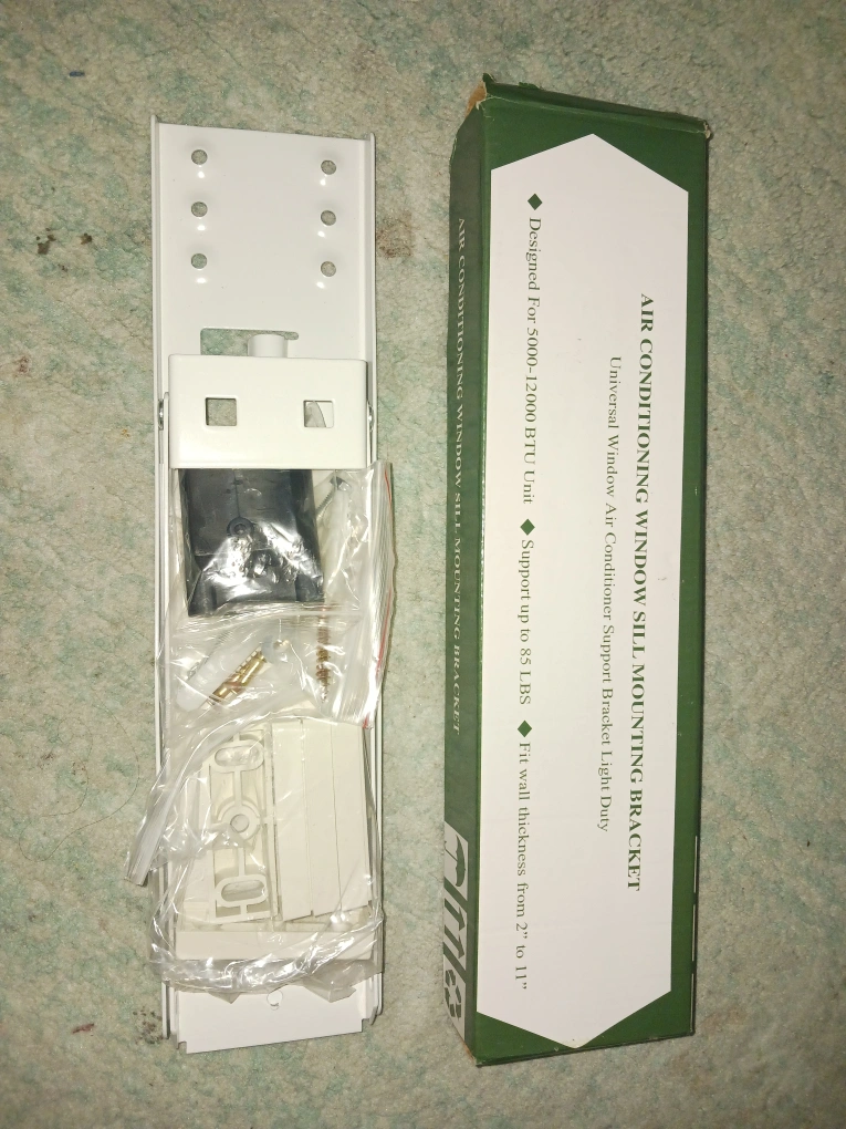 Universal window air conditioner support bracket. Light duty. Fits 5000-12000 BTU units. Supports up to 85 lbs. Fits wall thickness from 2 to 11 inches. Includes all mounting hardware.