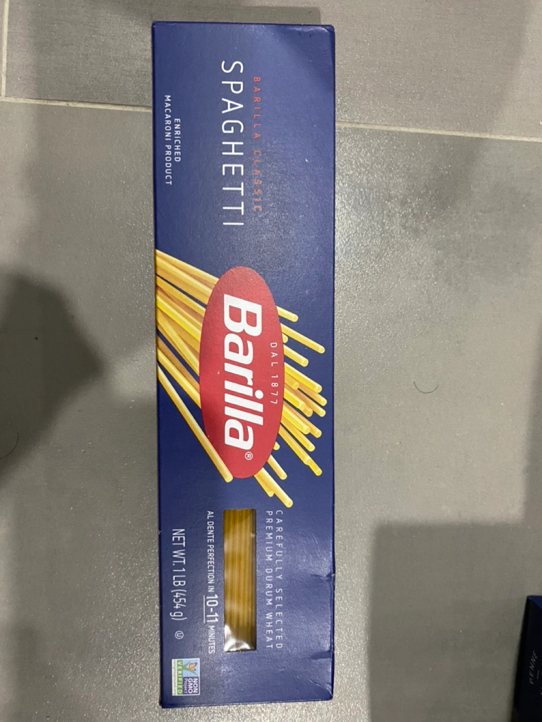453One 1 lb box of Barilla Classic Spaghetti. Enriched macaroni product. Premium durum wheat. 10-11 minutes cook time. New in box