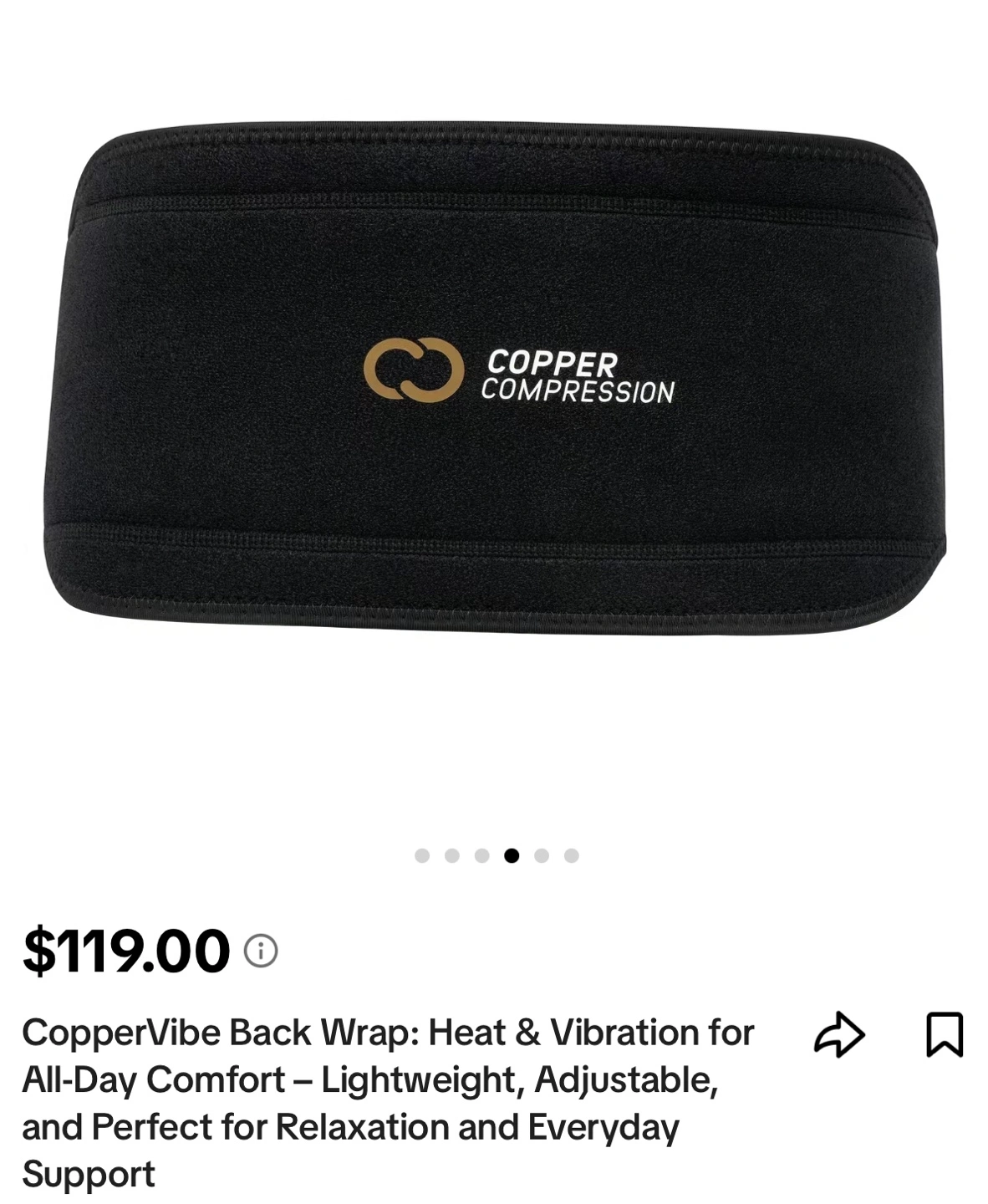 Heat and vibration back wrap. Lightweight and adjustable. Perfect for relaxation and everyday support.