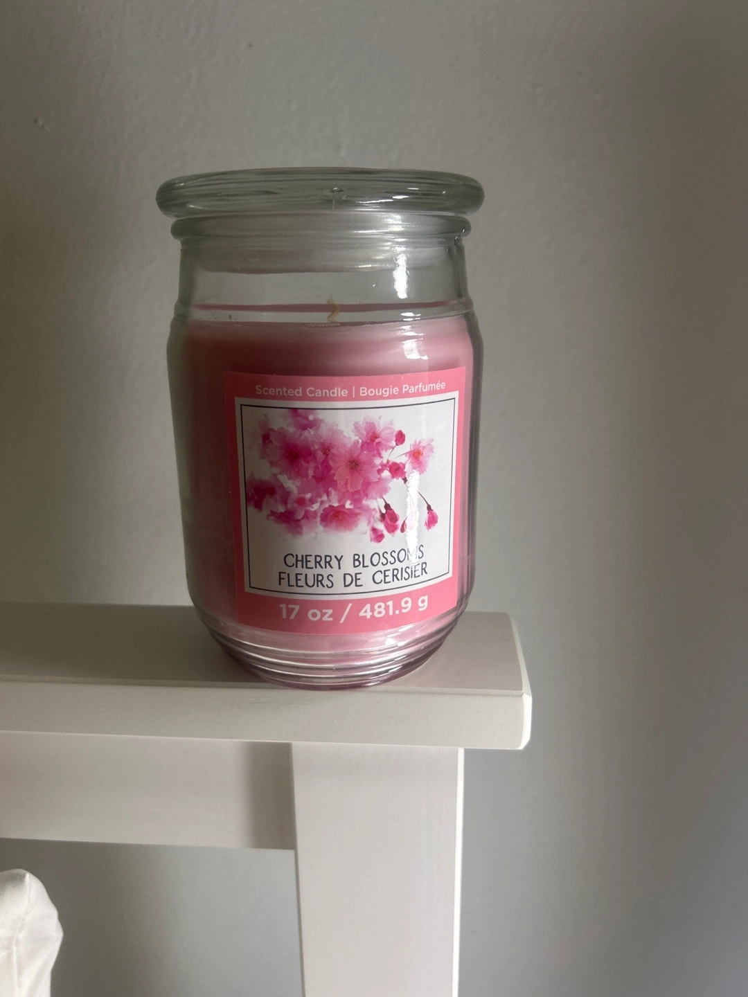 1000+Pink cherry blossom scented candle. Glass jar. Unused.