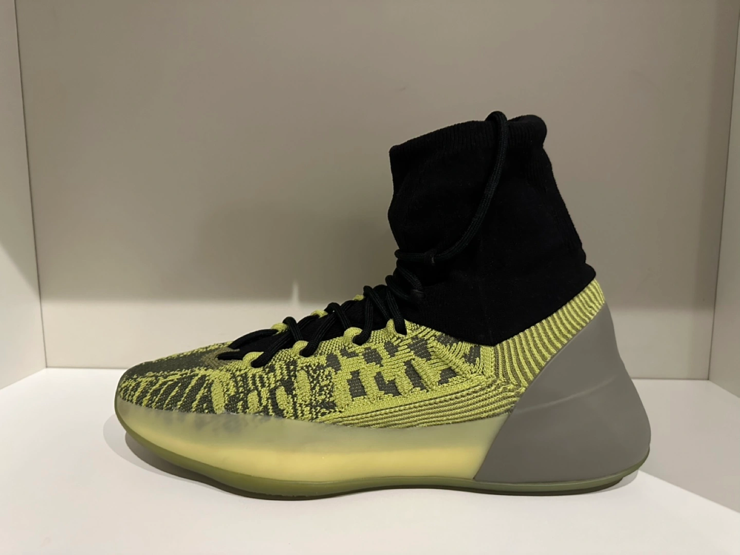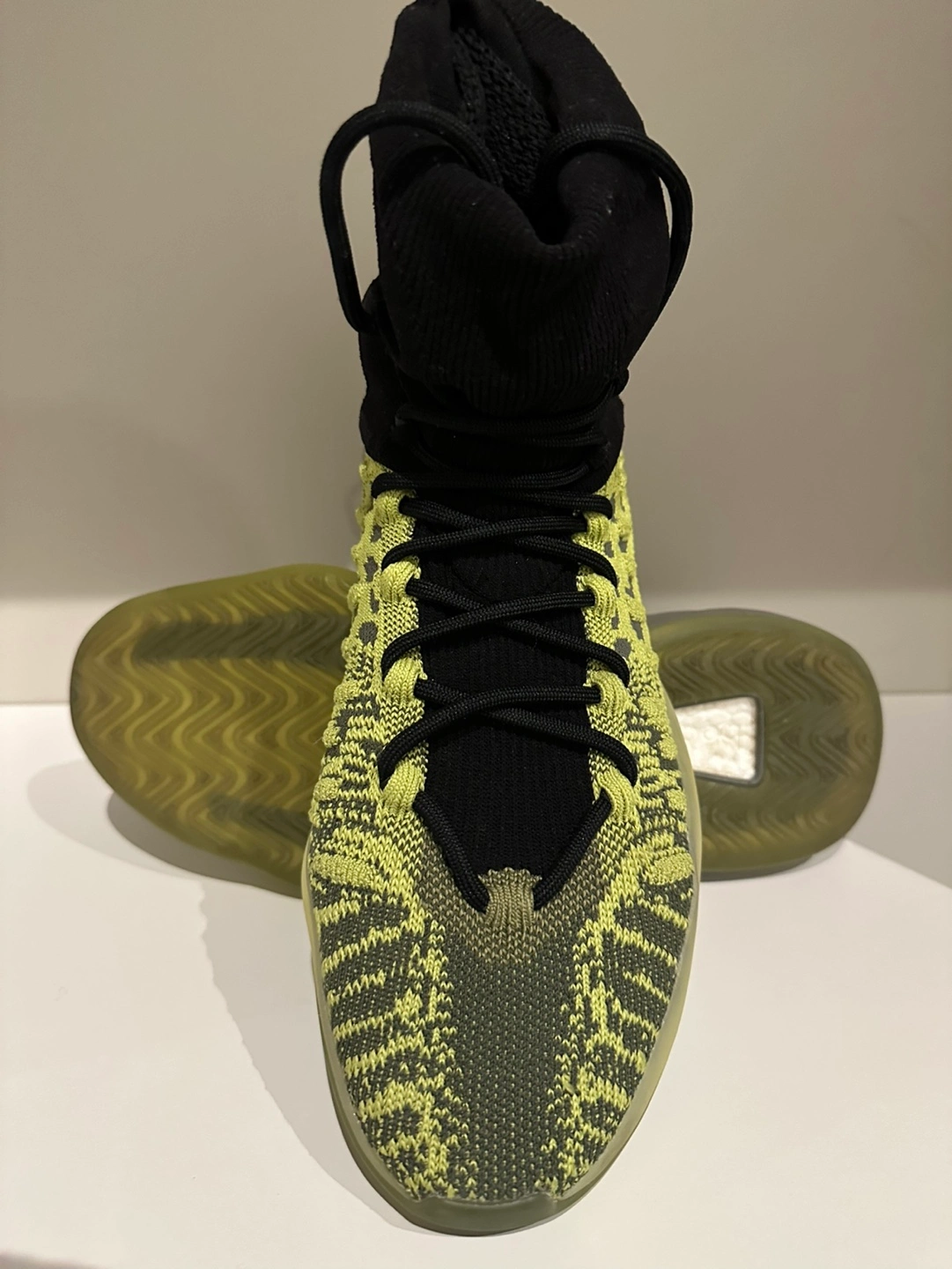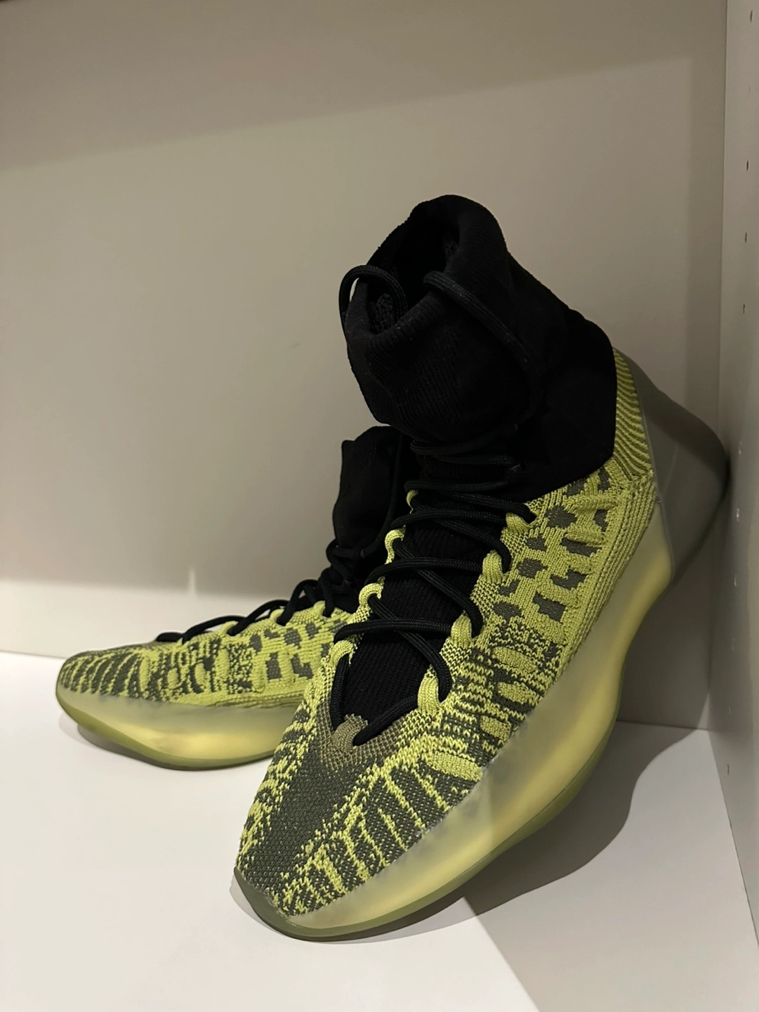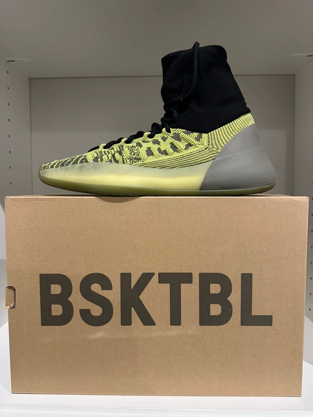 adidas Yeezy Basketball Knit Energy Glow in size 11 for men is an athletic sneaker designed for basketball performance. It features a vibrant yellow Primeknit upper material with a stylish design. This model is part of the Adidas Yeezy product line and was released in 2022. is very much like new only wore one time no real signs of wear or tear. And it does come with the original box.