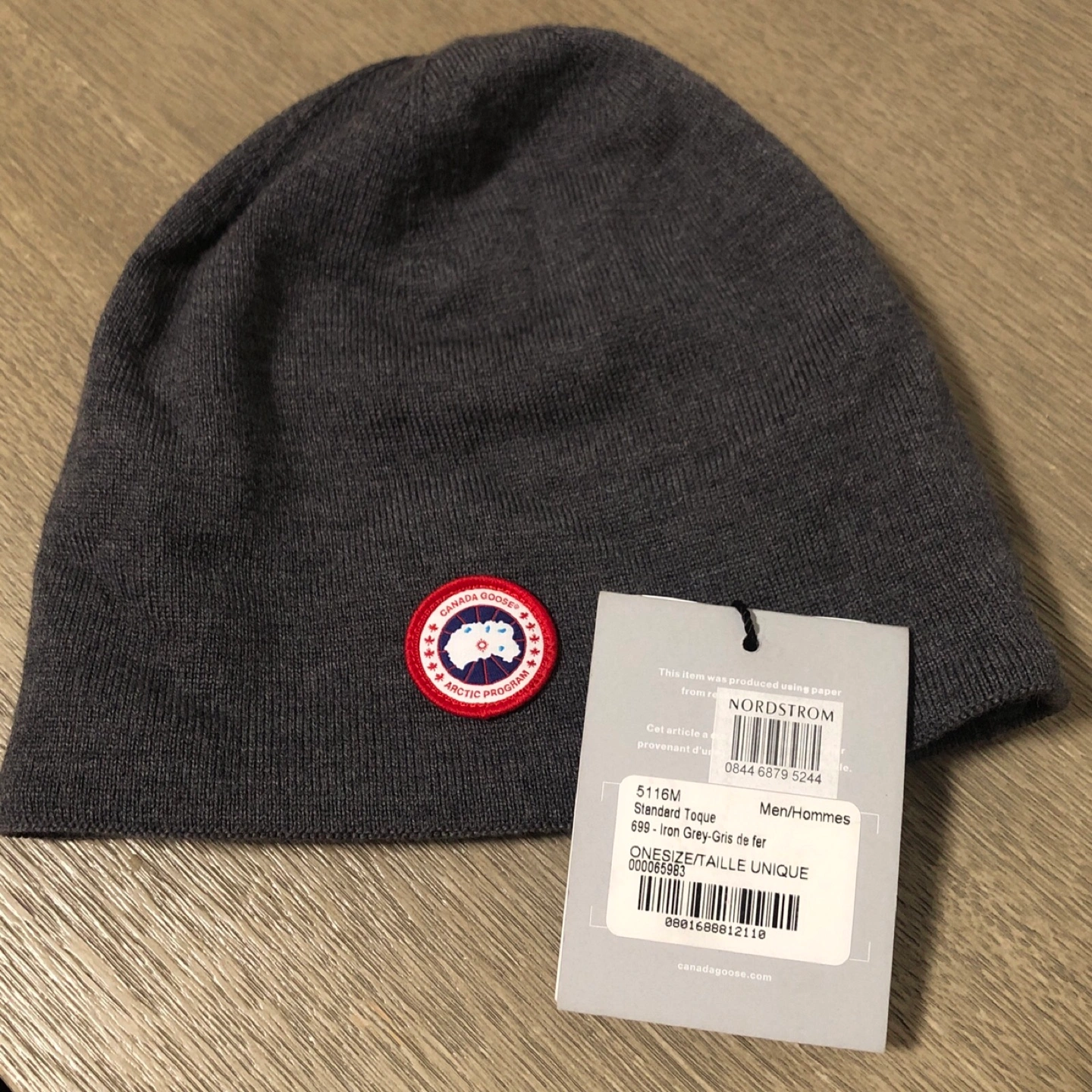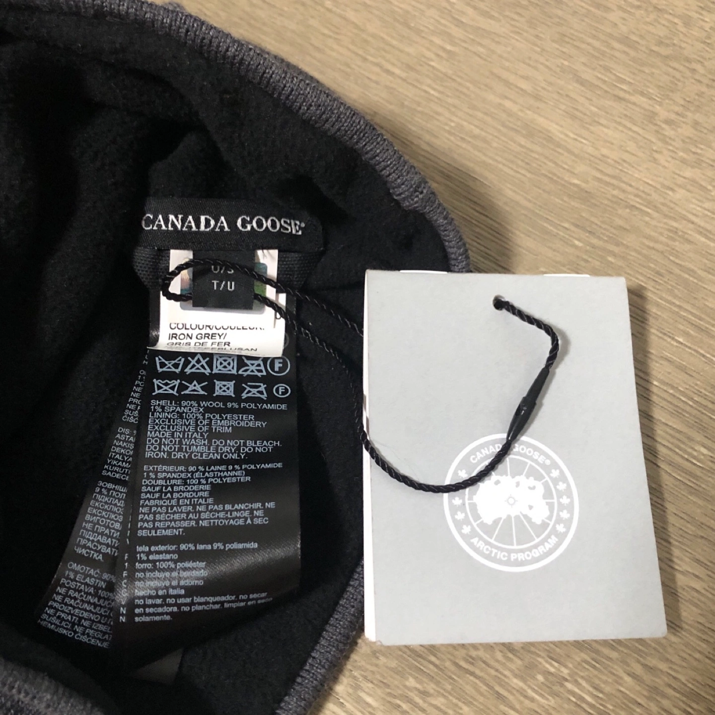 30Men's Canada Goose beanie. Iron Grey color. One size fits most. 90% wool, 10% polyamide. Dry clean only.