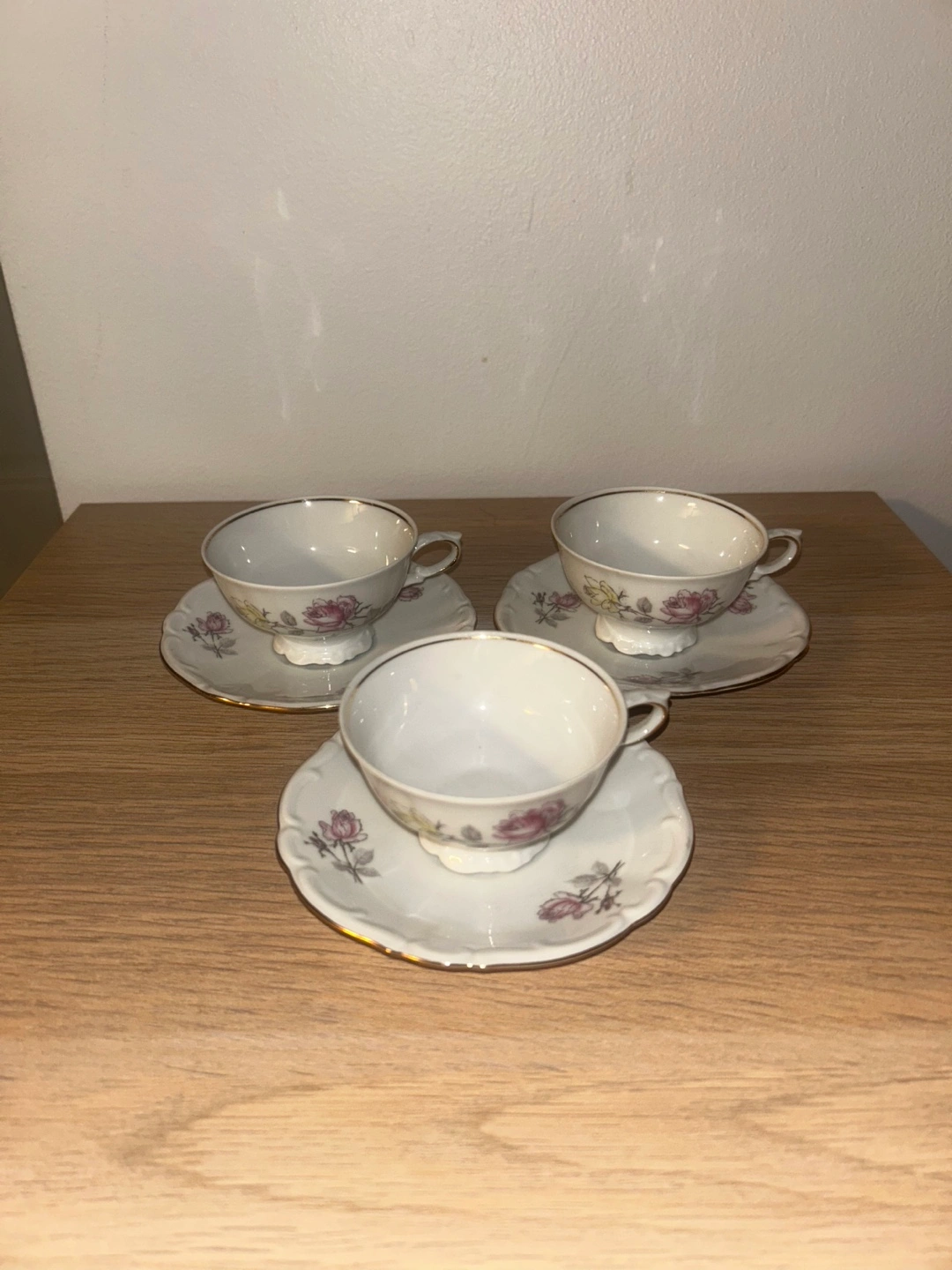 Vintage 1969 Tea Cups from Bareuther Waldassen. Bavaria / Germany. Set of 3 (6 pieces total, 3 cups, 3 corresponding plates). Excellent condition.