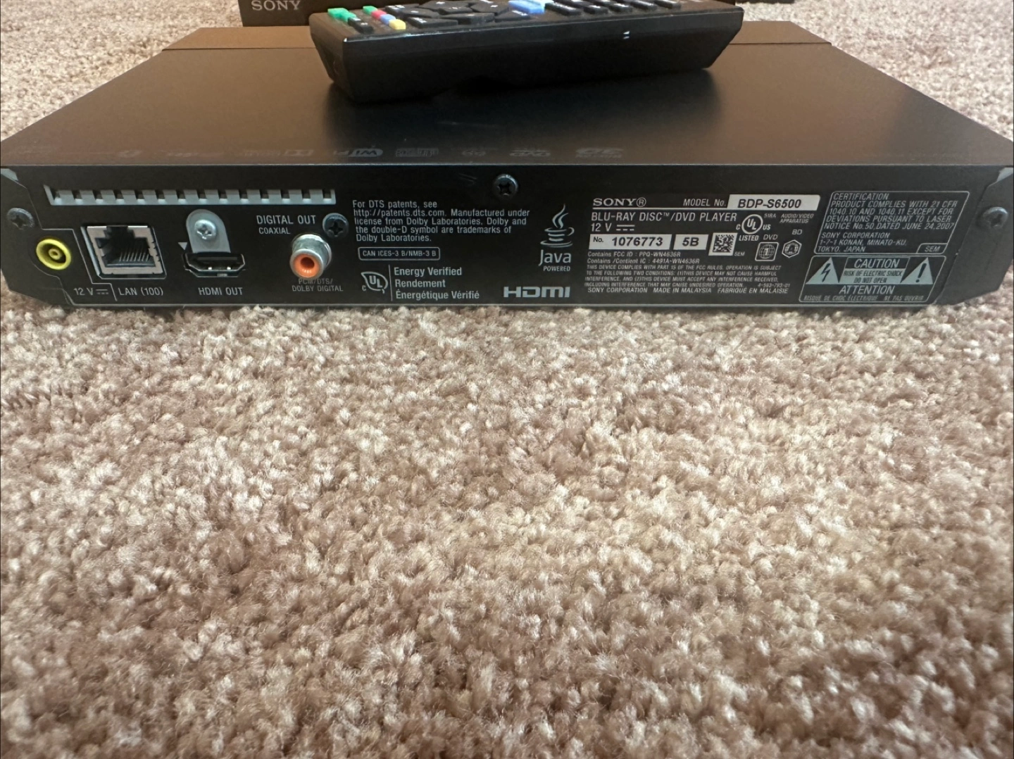Selling a Sony BDP-S6500 Blu-ray Disc/DVD Player. It supports 4K UHD Upscale and has Wireless LAN built in. The model number is BDP-S6500. It’s in great condition and it comes with the remote control. Feel free to reach out if you're interested!