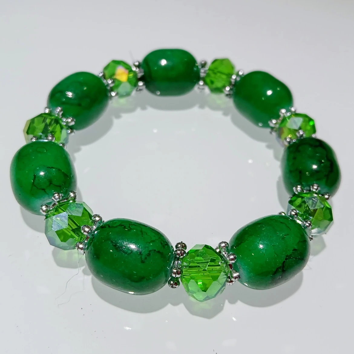 1000+Gorgeous green stone and crystal stretch bracelet. Perfect for everyday wear. Subtle sparkle.