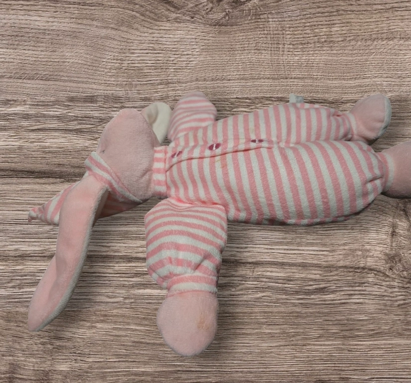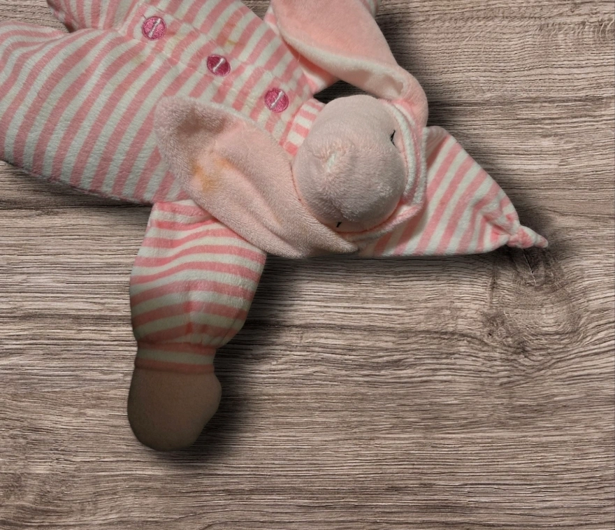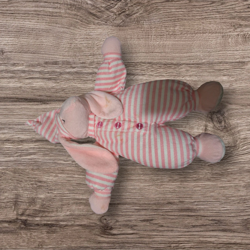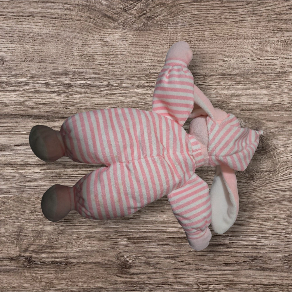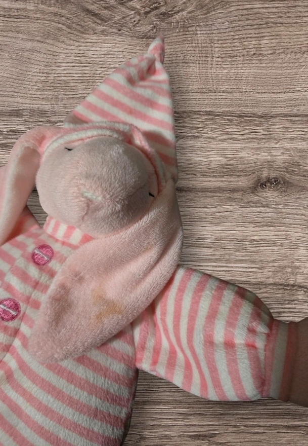 1000+Soft pink bunny plush toy. Pink and white striped pajamas. Long floppy ears. Great for babies and toddlers. preloved just needs some TLC has some washable orange spots #freecycle