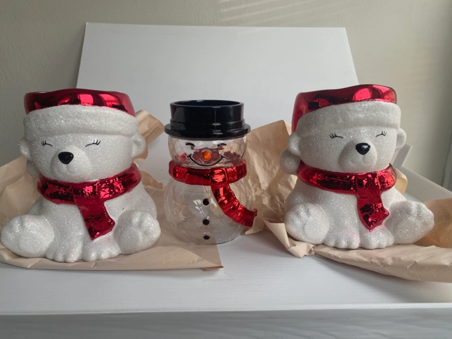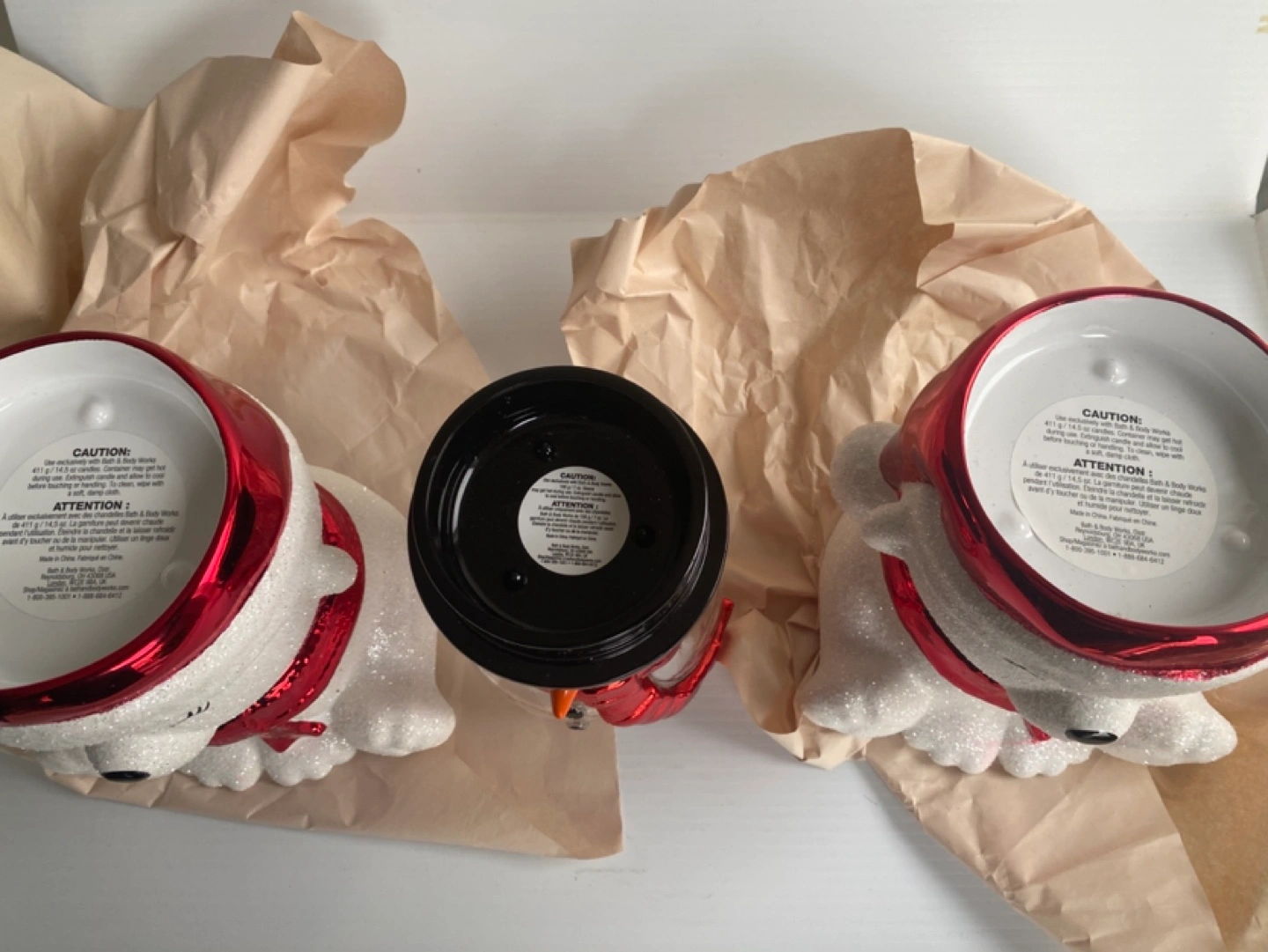 863 Bath and Body Works Collectible Candle Pedestals. 2 Santa Polar Bear Pedestals that can be used for both White Barn or Bath and Body Works 3 wick candles. 1 Snowman Pedestal for single wick candles. These are new and have been stored away a few years. I am located near Myrtle and Wyckoff Aves, Brooklyn. This is a cash and pickup deal only