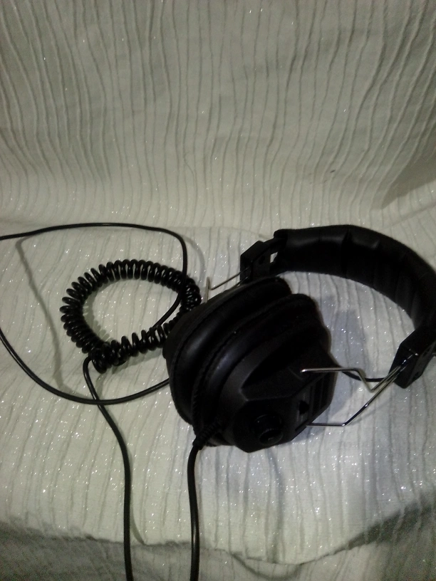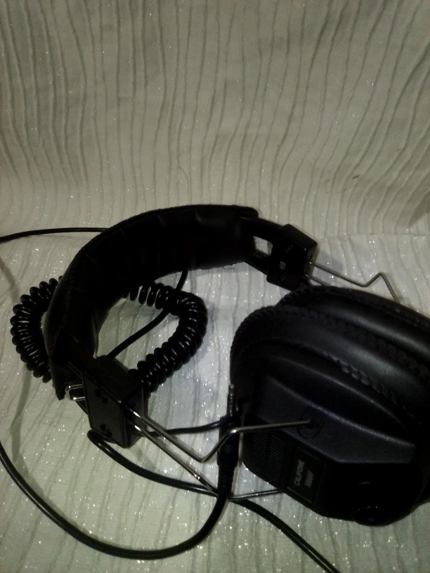 New Black over-ear headphones. Coiled cord. Volume control on earcup.